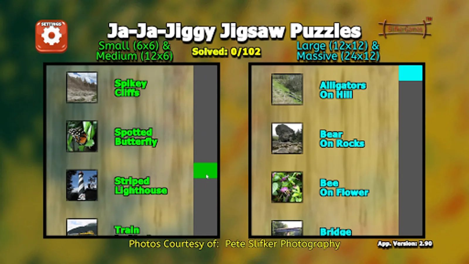 Take your jigsaw puzzles with you. Never lose a piece again. Jigsaw puzzles are super popular for a reason. They are fun and very relaxing. Ja-Ja-Jiggy is a collection of over 100 high definition puzzles taken by an award winning photographer.