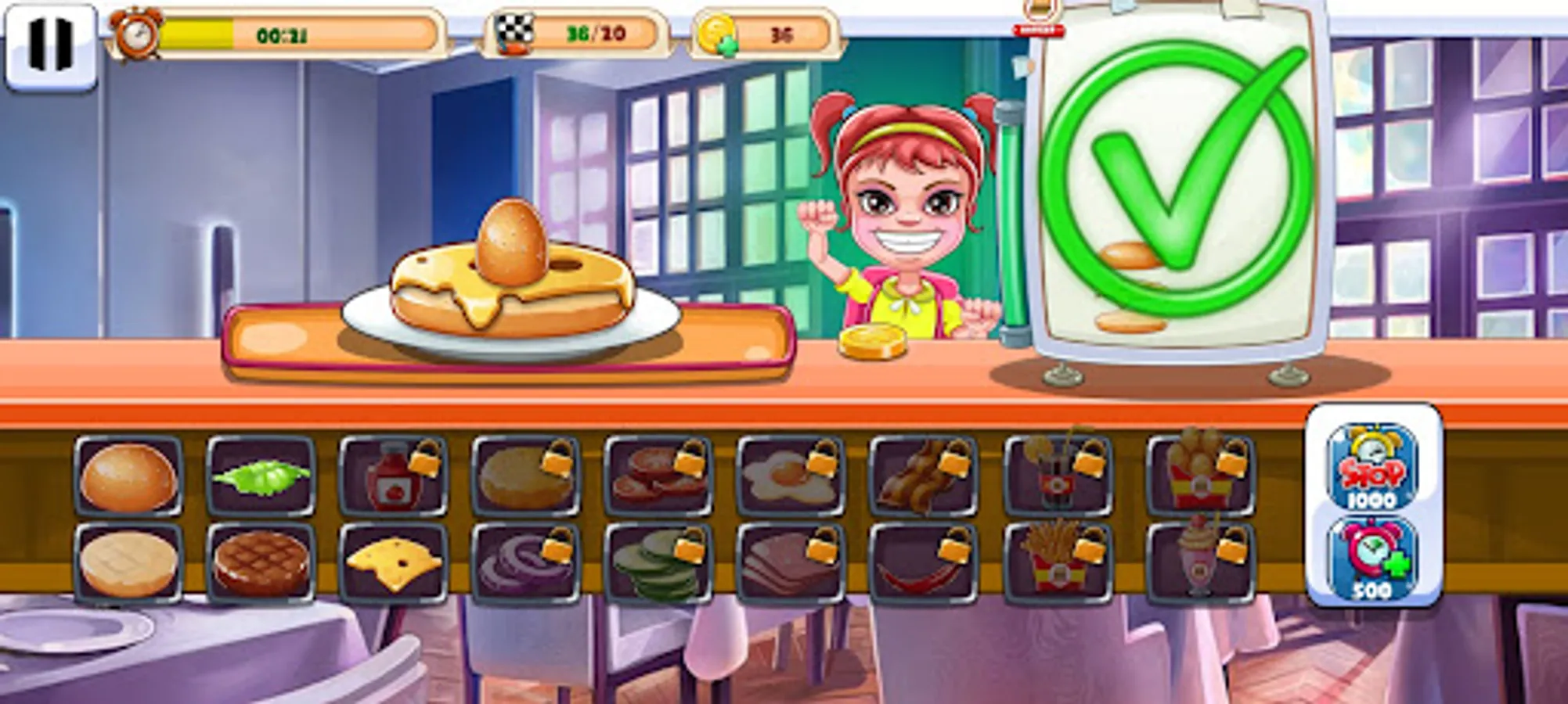 Be the best burger chef, add toppings in your food and make the best burger in town! Make the most mouth watering burgers with onions, tomatoes, cheese, mayo, lettuce and lots of bacon. Upgrade your restaurant with more food varieties!