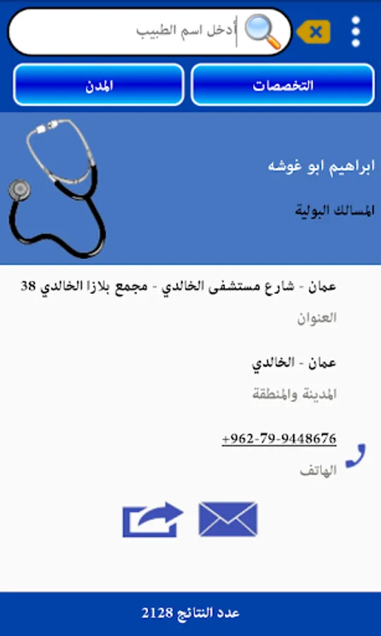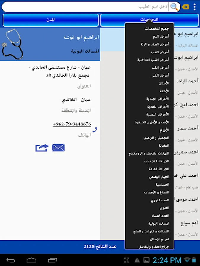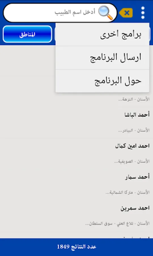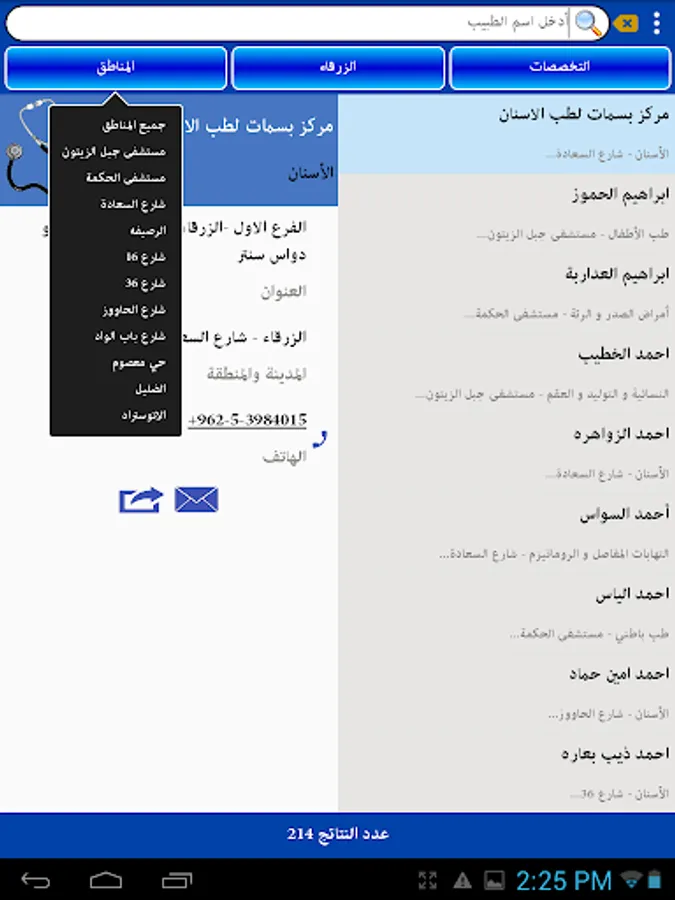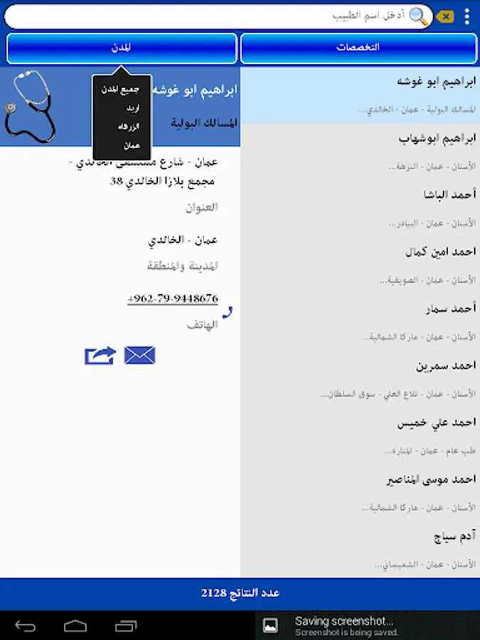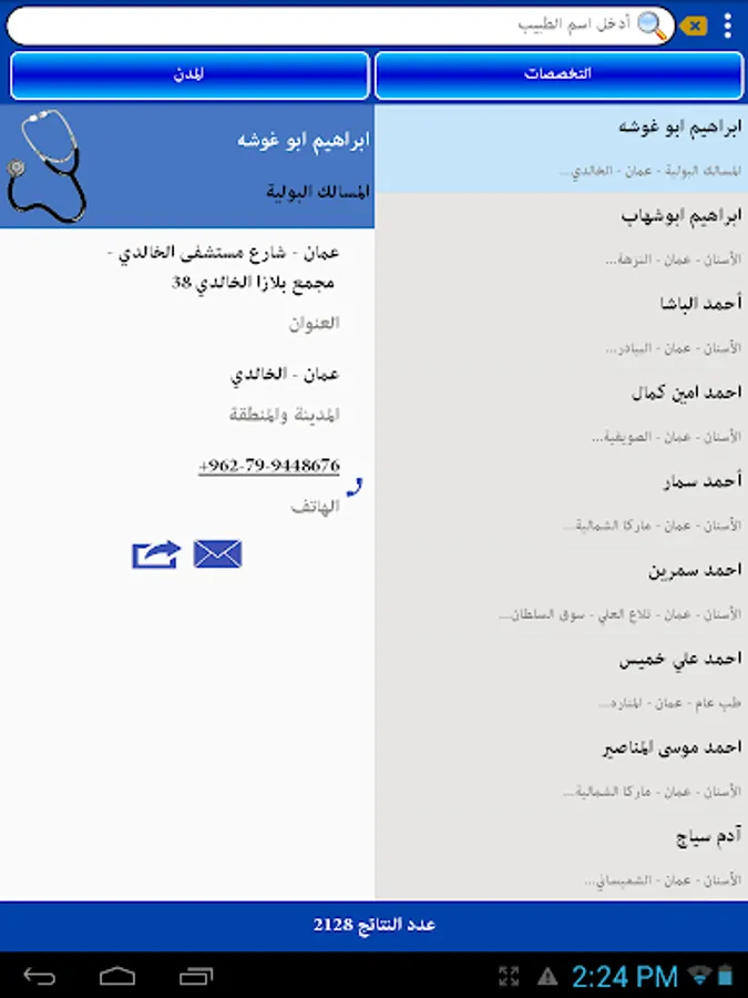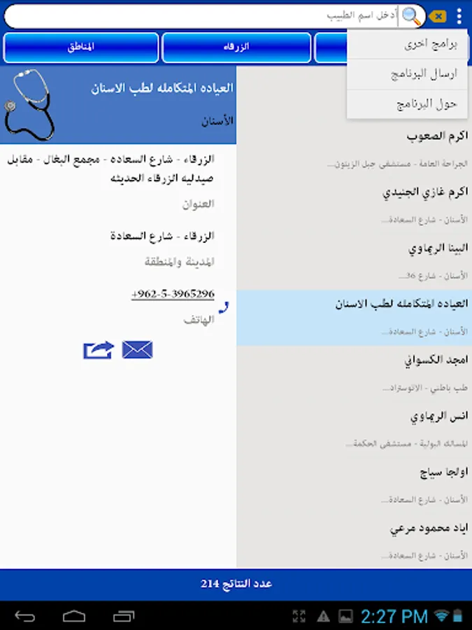 Jordanian doctors guide a program that contains an updated list of addresses and phone numbers of a large group of private doctors' offices in the city of Amman and Zarqa and Irbid city, the program also provides the ability to search by name, competence and the city and the region.