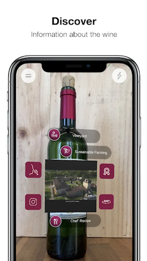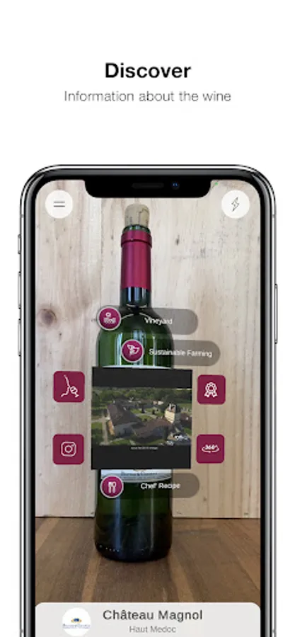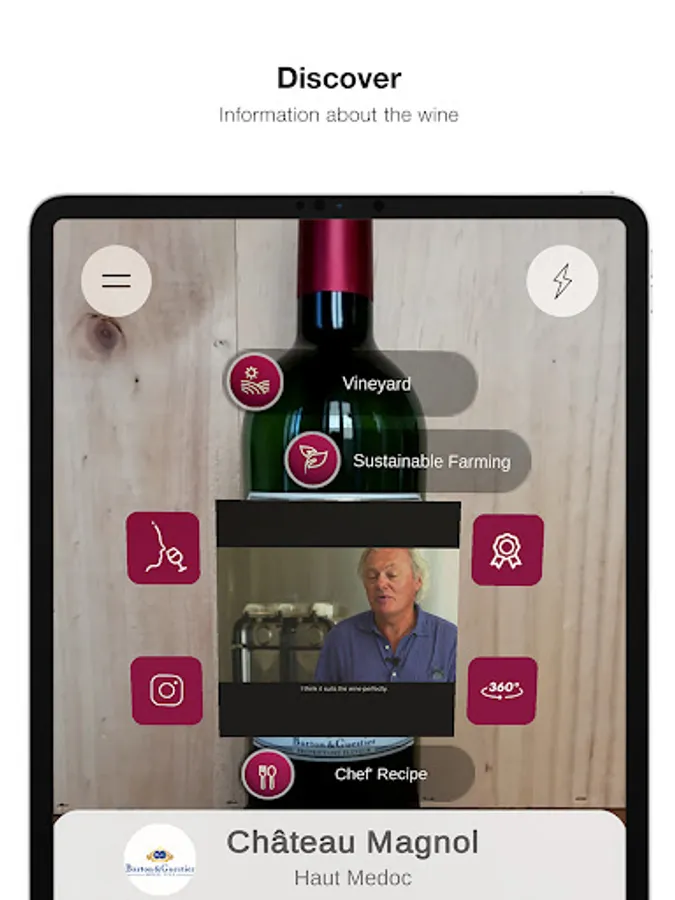 SMARTBOTTLE is the reference application for wine professionals: an innovative communication tool for producers, it allows customers to discover more about the wines that interest them, simply by scanning the bottle with the camera. application. In a simple gesture, this information on a wine, an estate or a producer appears thanks to our Augmented Reality technologies.
