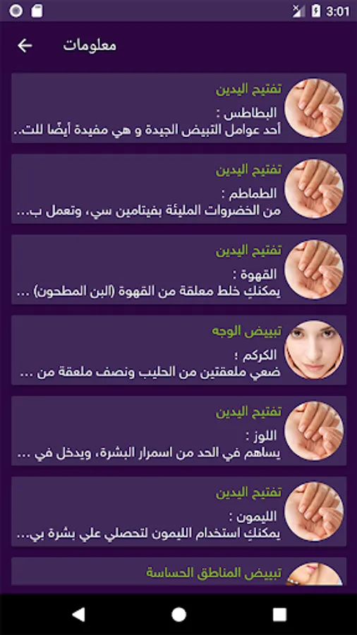 The free application that keeps you from wasting your precious time searching for mixtures of bleaching the body in various forums and sites, most of which are without result, so we have specially compiled for you more than 200 effective and proven home mixes and recipes for skin and body care in the easiest ways and there is no risk or side effects In addition to the inexpensive ingredients available in most homes, unlike unnatural creams that may cause effects and scars on the skin, which may be difficult to remove.