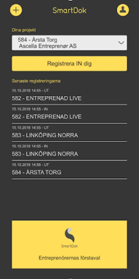SmartDok Personligligare is an app that makes it possible for subcontractors to register on a SmartDok-based personnelligare via their mobile or tablet.