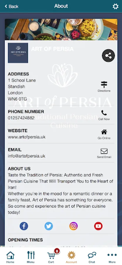 Taste the Tradition of Persia: Authentic and Fresh Persian Cuisine That Will Transport You to the Heart of Iran! Download our ordering app and browse our menu, select food and order it online for collecting next day!
