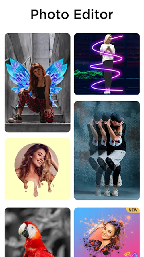 Unleash your creativity with neon spirals and cute angel wings. Finalize your photo editing with the pic collage