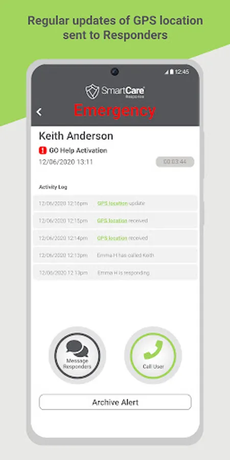 With this App, you can monitor someone you care for, and be a Responder in the event of an emergency. When a help button is pressed, emergency alerts are sent to all Responders simultaneously, notifying them via push notifications and text messages. Through the App, a Responder can call the device and talk to the user, view what action has been taken, and in-app message each other during an event.