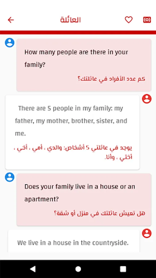 ### English Arabic dialogs app Main Features : ###