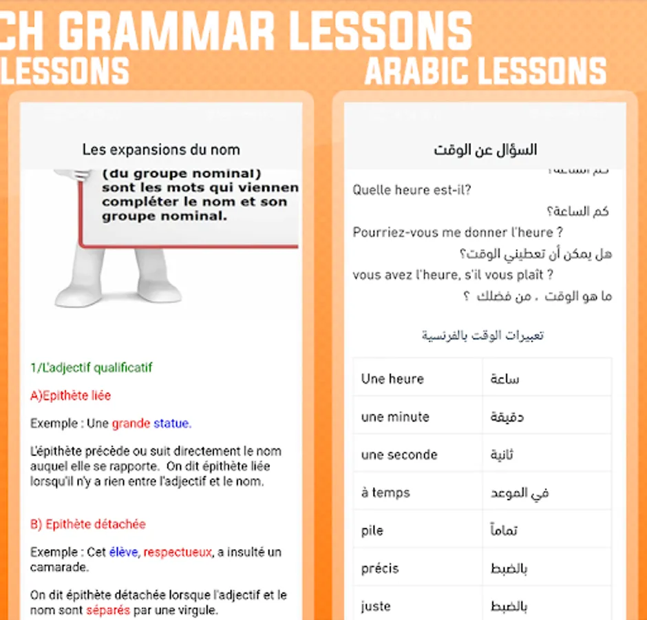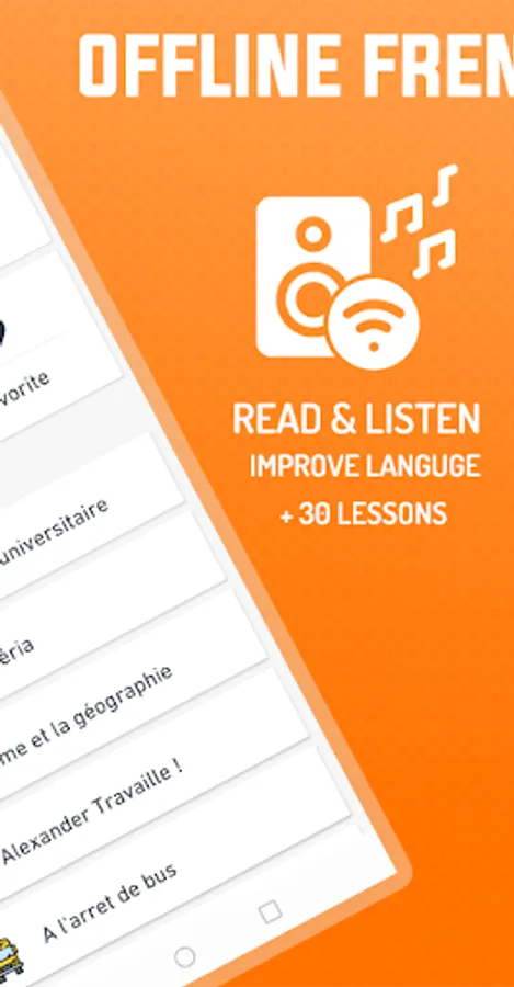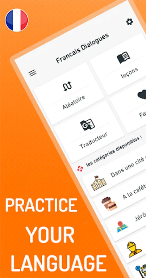 This app contains everything you need to improve your French while having fun. Come improve your mastery of French thanks to its dialogues in French mp3 text audio!