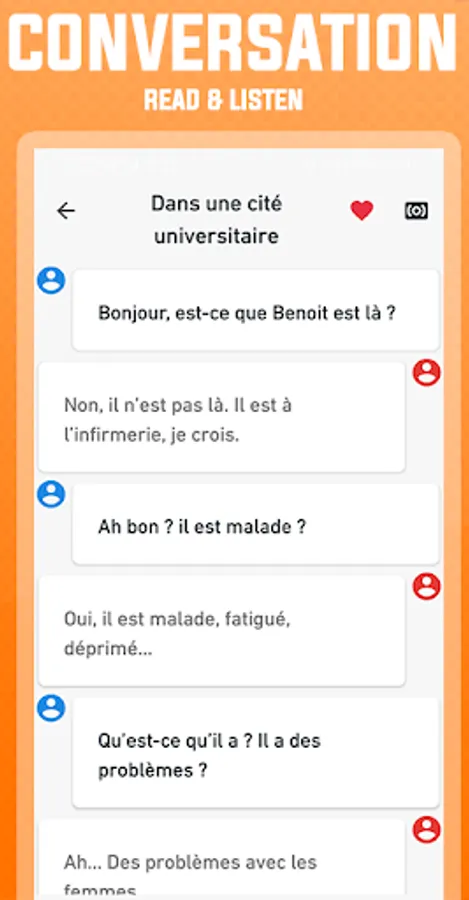 french dialogue audio offline texte and french dialogues french conversation between two or tree persons make you Practice your reading, listening, speaking and writing skills while playing a game!