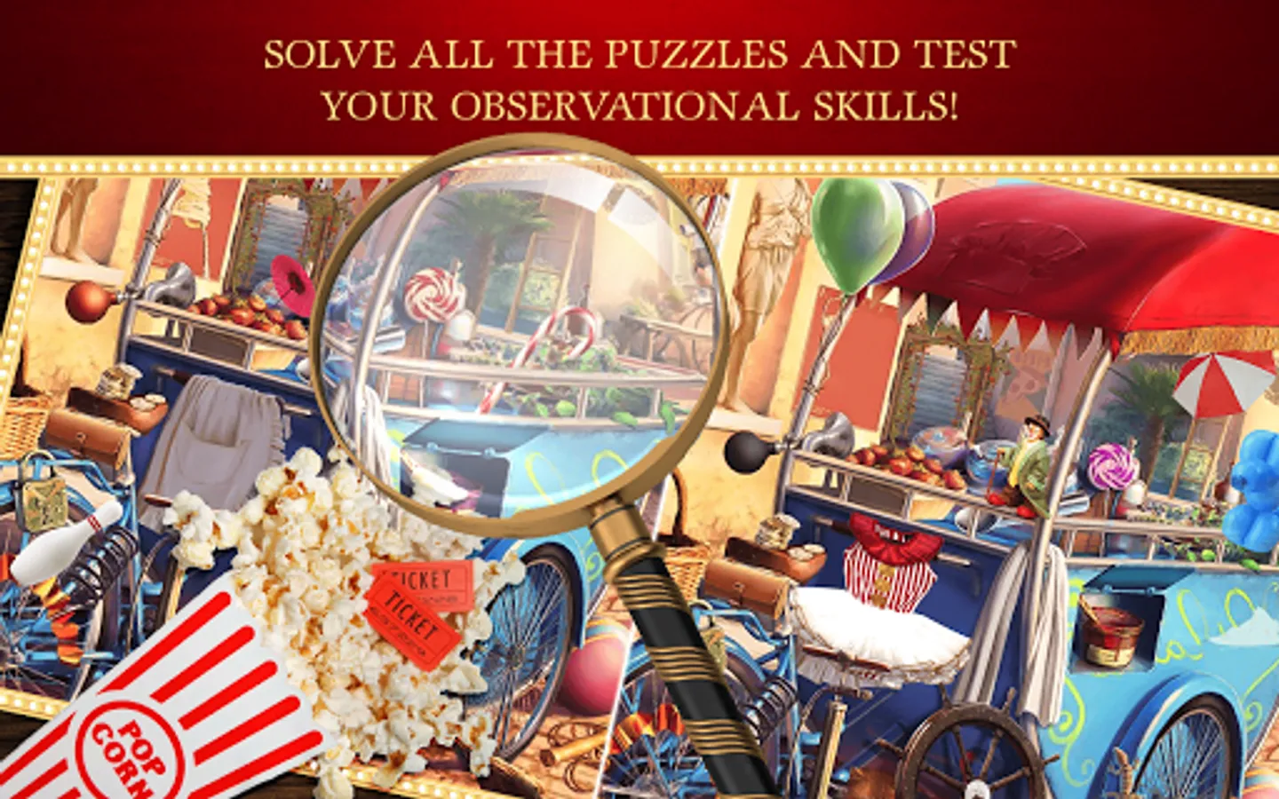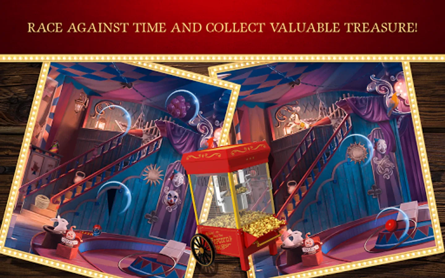 Finding games that are both relaxing and time-consuming is quite difficult, which is why Circus Conquest Find The Difference is the best spot the differences adventure game for you! Grab your popcorn and become a real circus acrobat that manipulates each scene and object masterfully! A circus is a truly exciting place – you can play different carnival games and difference games there, find the differences 500 and, finally, become the greatest showman! Other puzzles games free are not as complex as this circus game – race against time, find all the 15 differences in each scene and your time spend on playing these search games will soon increase! Can you spot it among all these charlie circus objects and sceneries? If yes, download the best find the difference between two pictures app and enter the world of fun entertainment games with tons of new features!