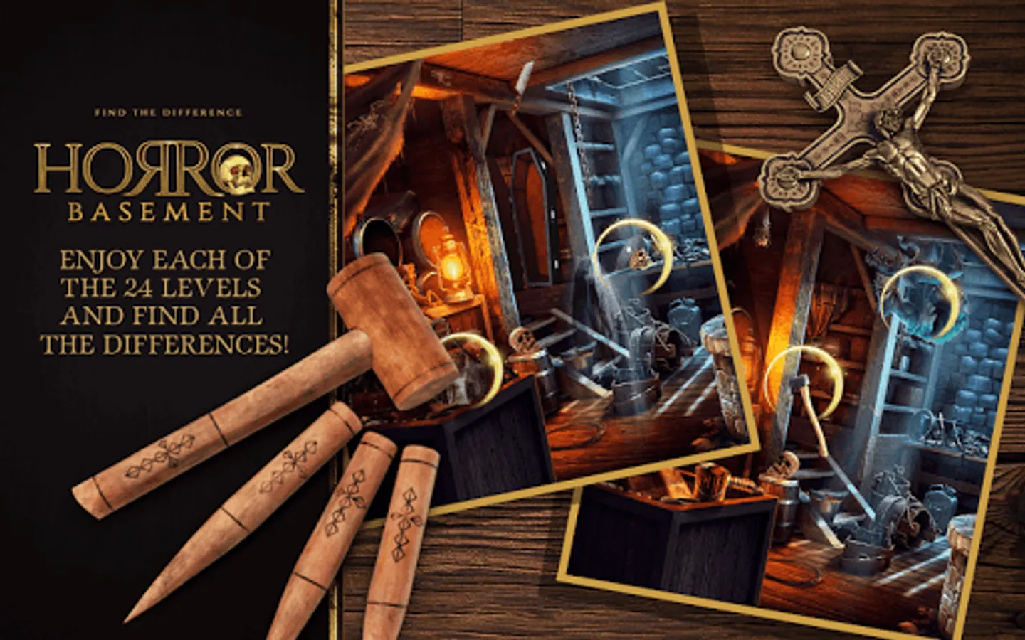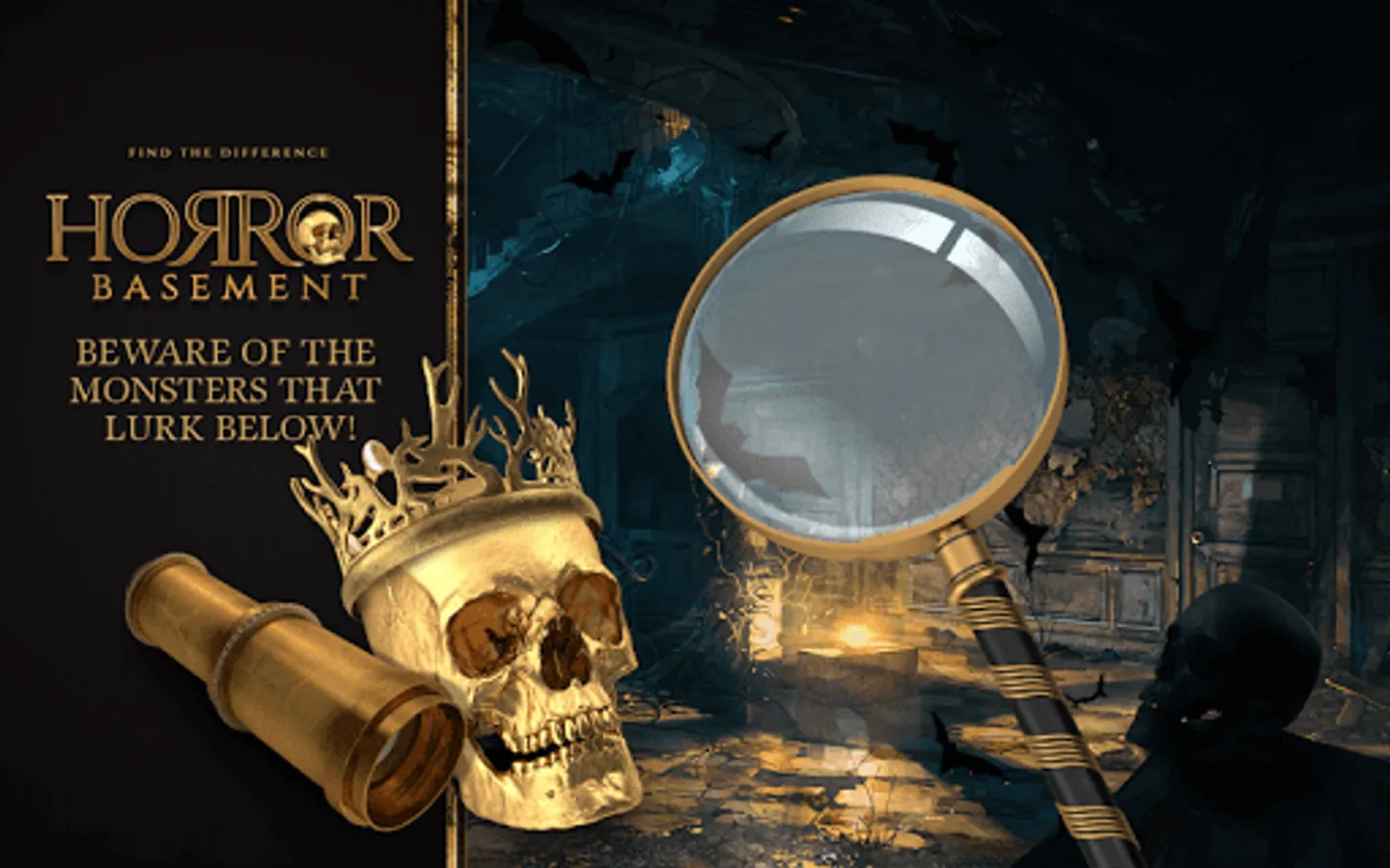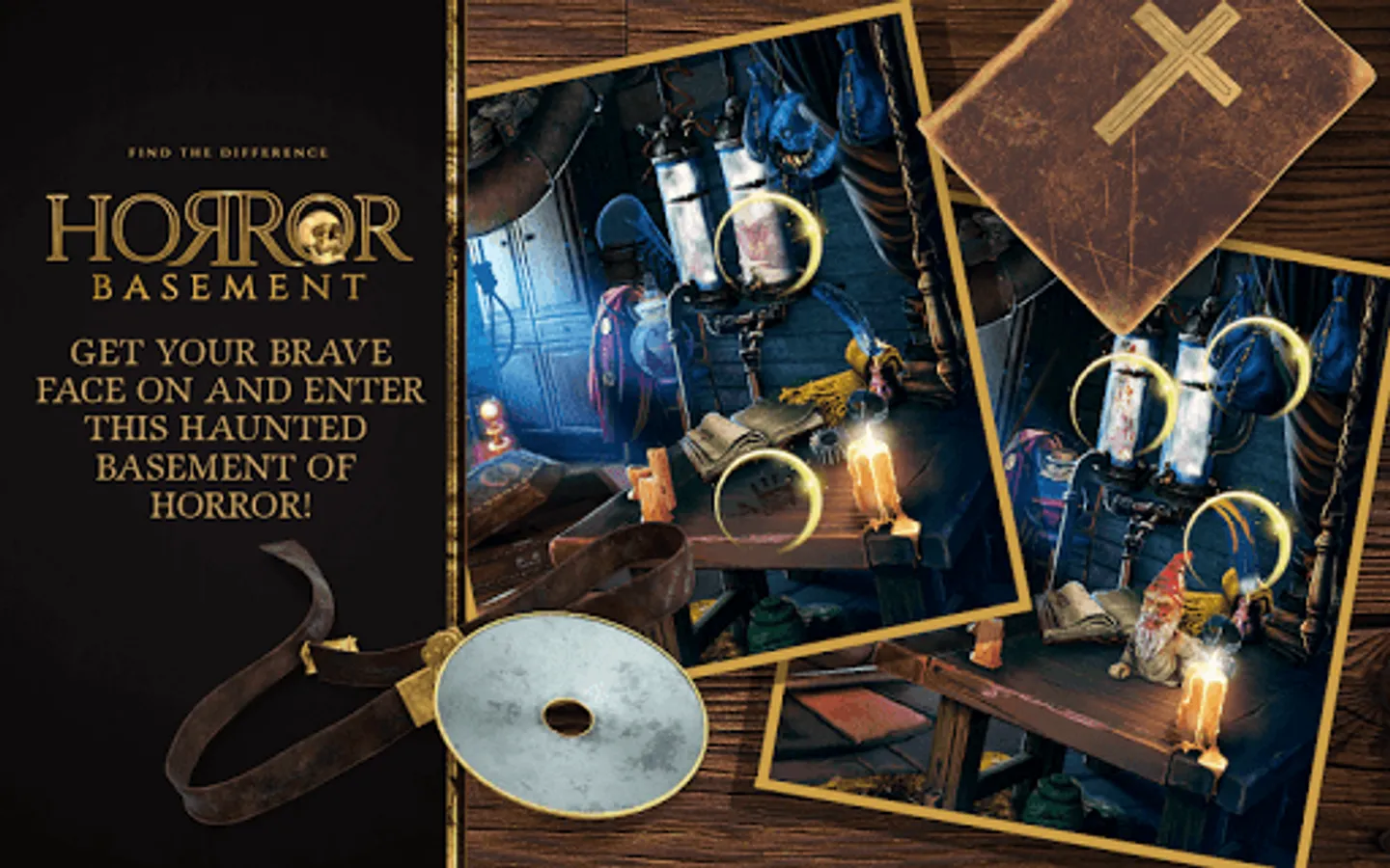 "π―Welcome to the ""horror basement"" of the scariest ""haunted house"" straight from the eerie ghost stories and urban legends old as the world itself! A super real and high quality ""find the difference game"", πHorror Basement Find The Differenceπ, takes you to a haunted mansion where supernatural and paranormal is very normal! Prepare yourself because you are not welcome in this ghost house on haunted hill and the only way to win in this ""escape game"" is to carefully look for ""differences""! ""Spot the difference"" as best as you can and as fast as you can because the clock is ticking and win in this ""puzzle games""! Do you dare embark on the scariest ""horror adventure"" and fight paranormal in ""find games""? Do you think you have a sharp eye? Prove it, ""find differences"" while disturbed by a ""ghost"", poltergeist or an evil spitit, free this place of the ghostly presence and prove yourself in the ""mystery games""! Download ""free puzzle games"", ""what diff spot it"" and have some fun!