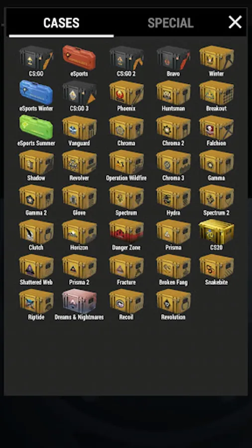 • Drop rates based on hundreds of samples to create authentic case opening simulation