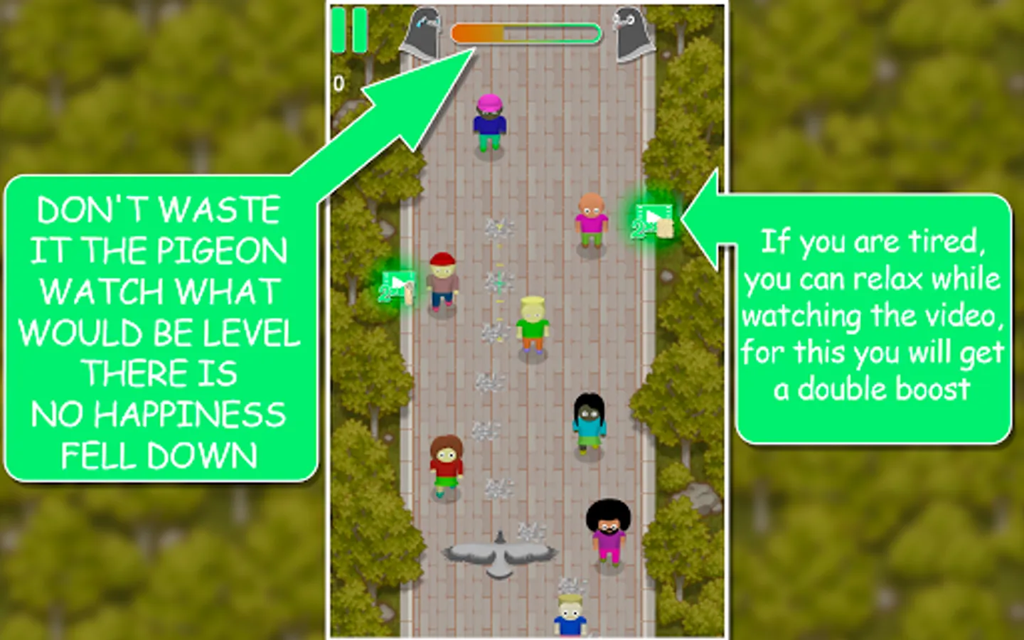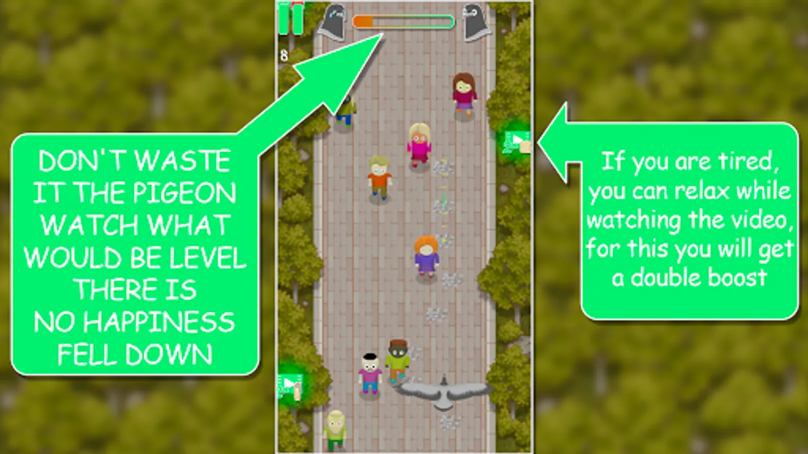You fly calmly and do your favorite things, crowds of unsuspecting people walk under you, and only you can decide what will happen to them.