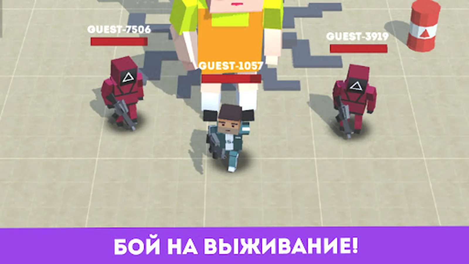 Squid.IO - Online Shooter🔫 is a simple battle royale game with casual mechanics in the style of Squid Game 🦑