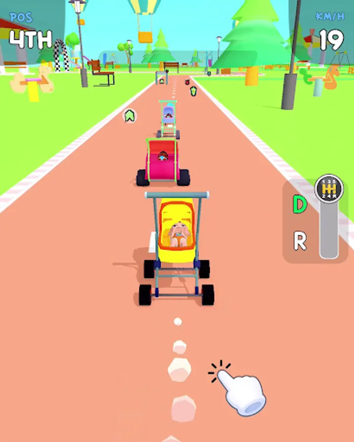 Navigate through exciting terrains and bustling cityscapes, where every corner turned is a new challenge. Test your strategies, dodge obstacles, and race for the golden pacifier trophy. With 'Stroller Race,' the fast and the curious have never been so cute!