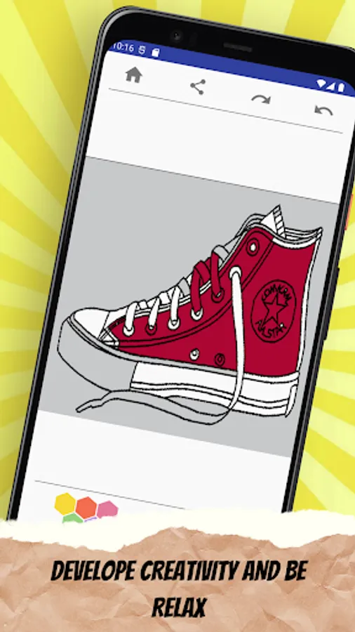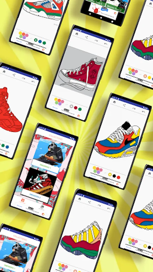 You can fill your imagination anad creativity on Shoes Coloring Book for boys and girls, all kind of shoes is here; ADID#S, NIK#, running shoes Pum#, Van#, Convers# and all star. tap and fill COLOR !