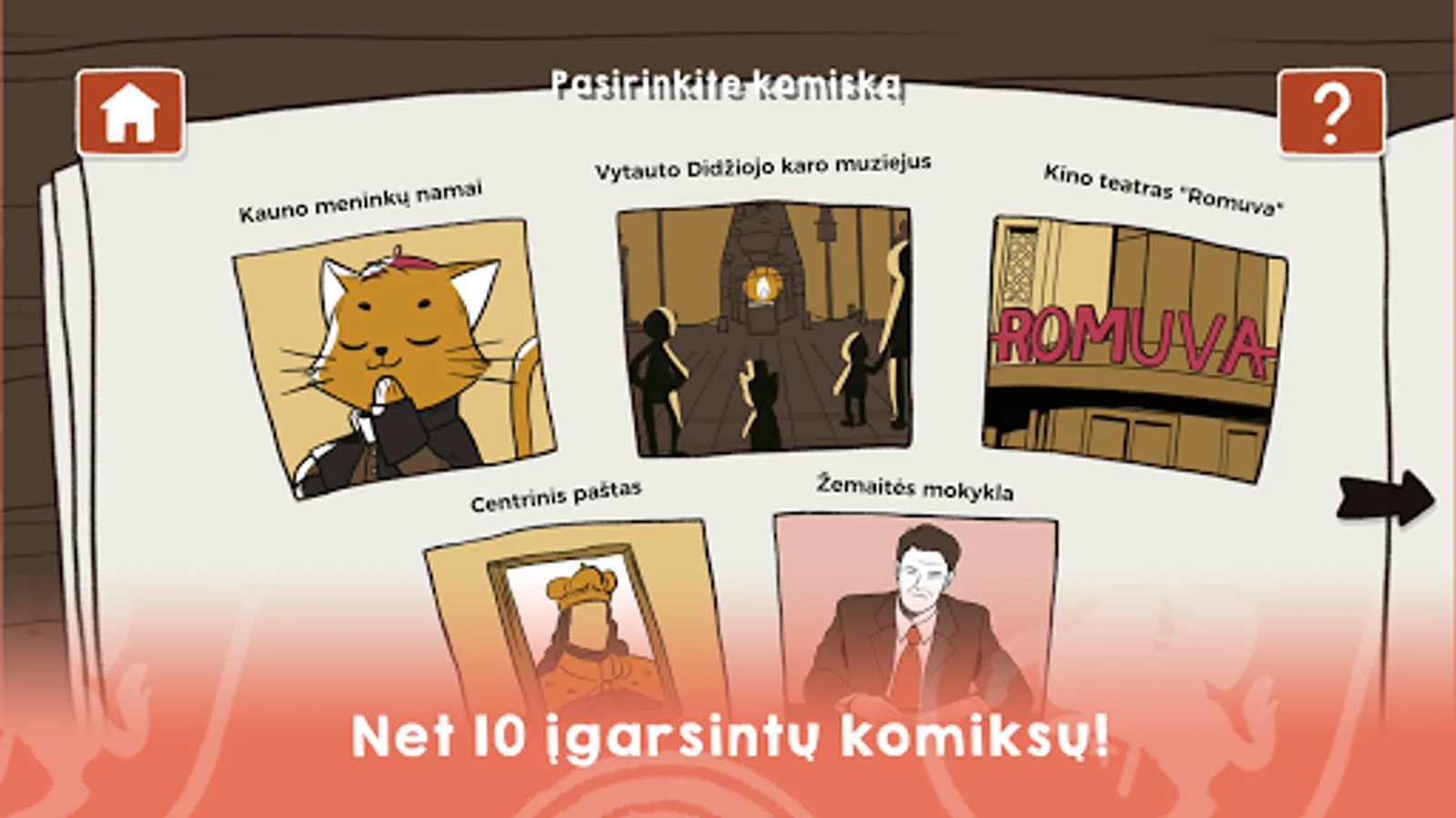 Great application designed to recognize Lithuanian interwar architecture, objects, symbols, details, have a good time. A great learning tool. Applications are presented in historical events, which tells the characters and the main character is a cat who knows everything.