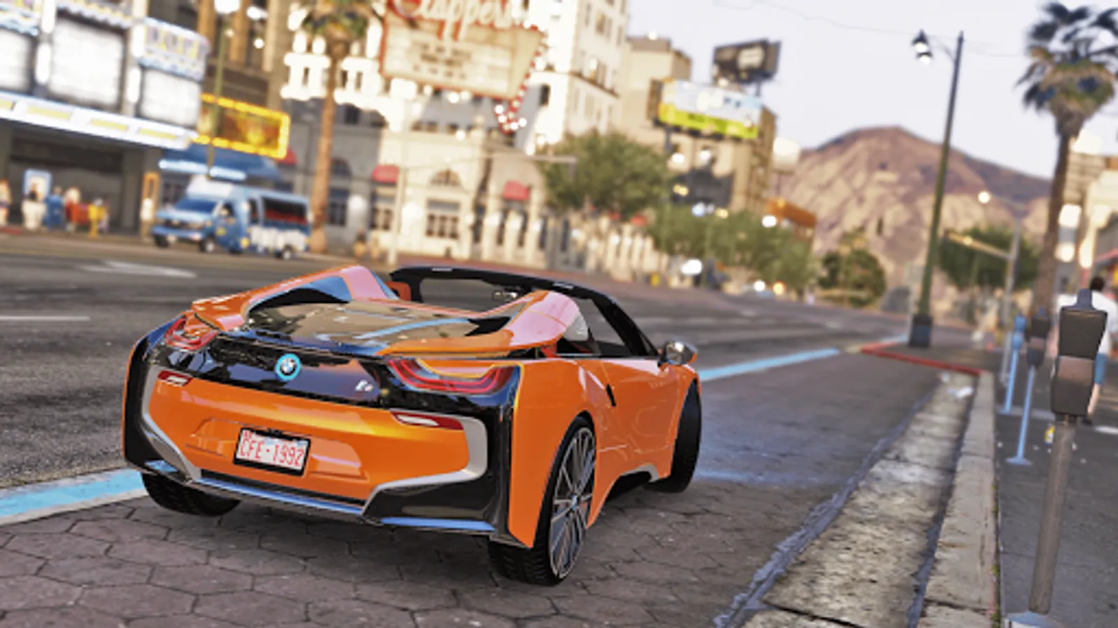 Drive BMW i8 in city, highway, on ramps and jumps or even offroad.