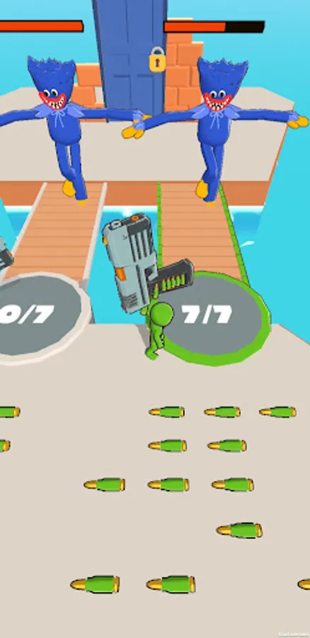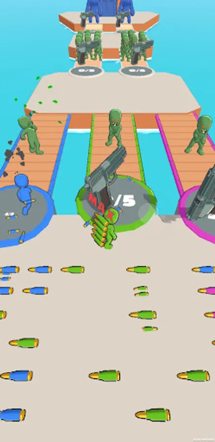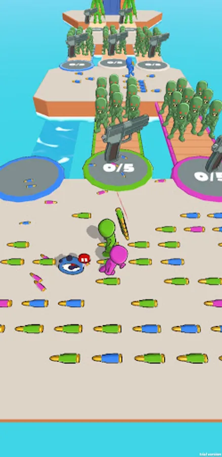 Collect bullets faster than your opponents to get through the crowds of zombies by shooting huge mega guns