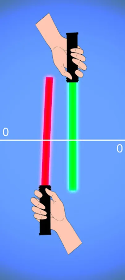 Play against your friends on the same phone! in this 2D light saber fighting arcade game.