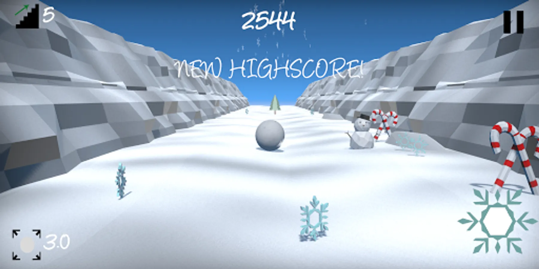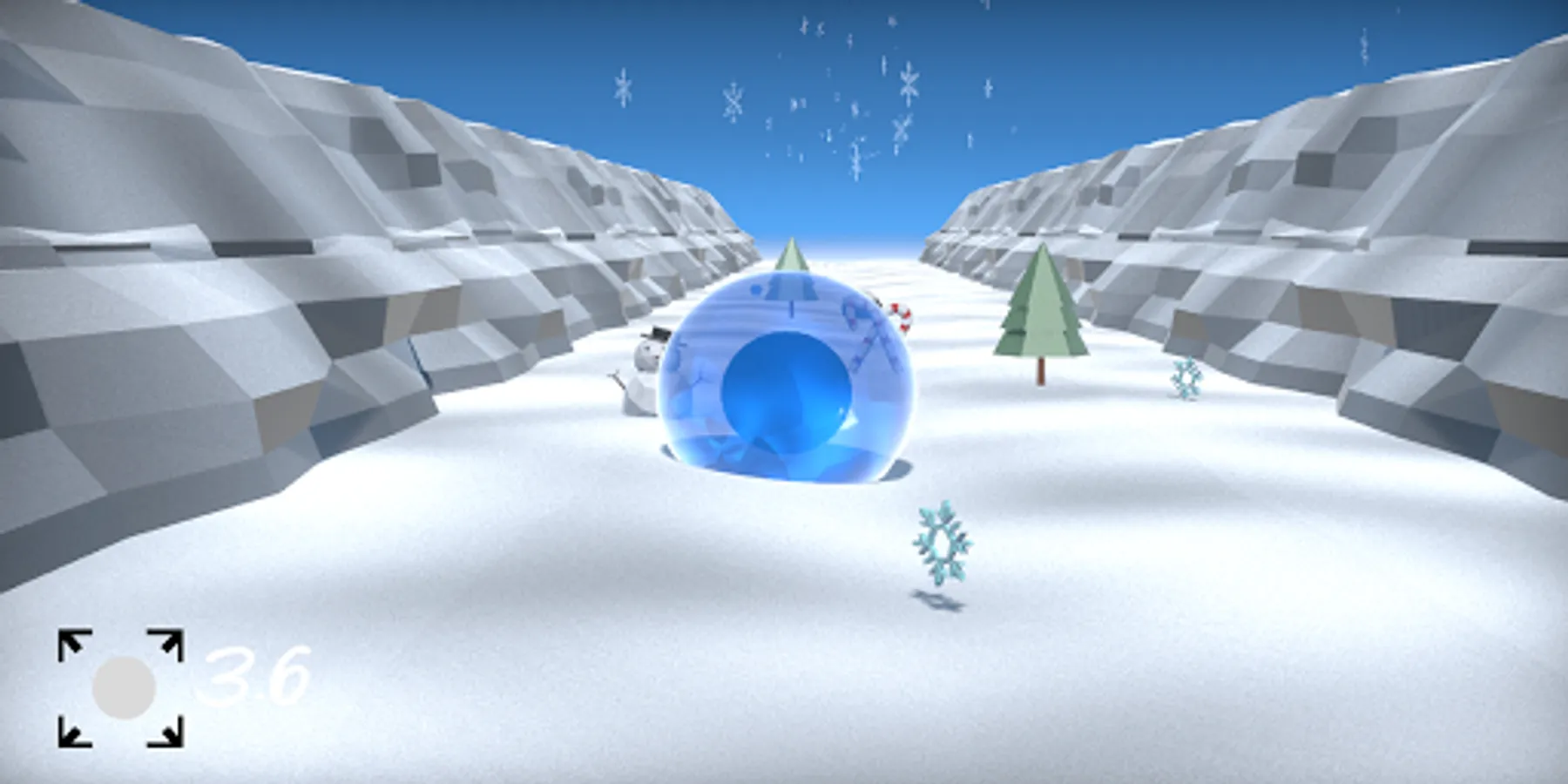 Snowy is about a little snowball rolling down the hill, collecting snowflakes, dodging obstacles and grow in size.