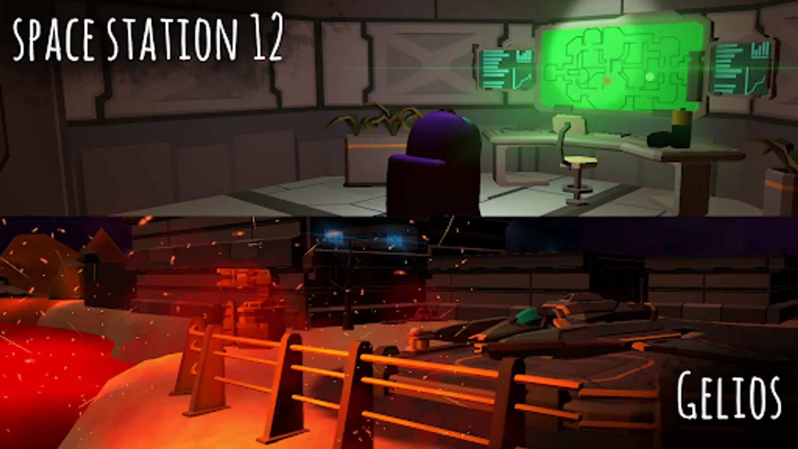 2. "Gelios" scientific station, with no one left except the astronauts and mini-astronauts. Krisper the imposter has appeared on the station. Save all the mini astronauts on the station, which is located on a planet covered in sand and lava.