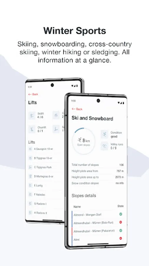 Which areas have the best snow and weather conditions? Where are most of the lifts open? Which kind of sports can I do at a particular winter destination? Where should I plan my next day trip?