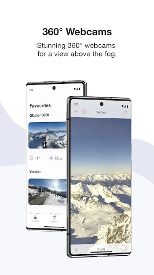 - Stunning new high-resolution 360° webcams. You can check the weather conditions on site digitally.