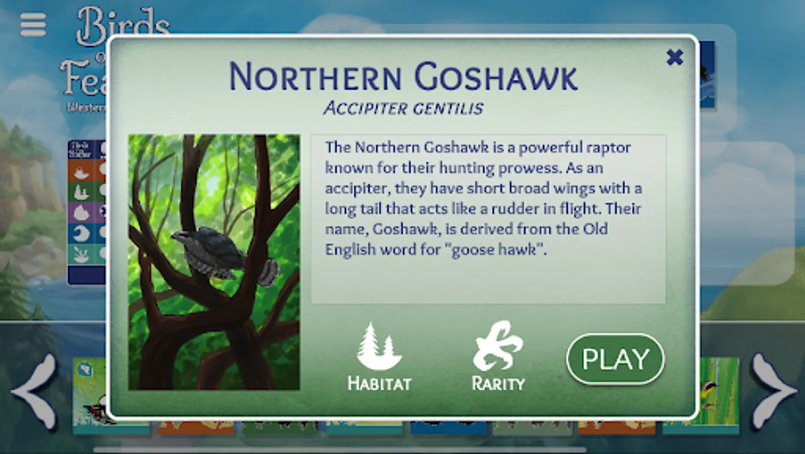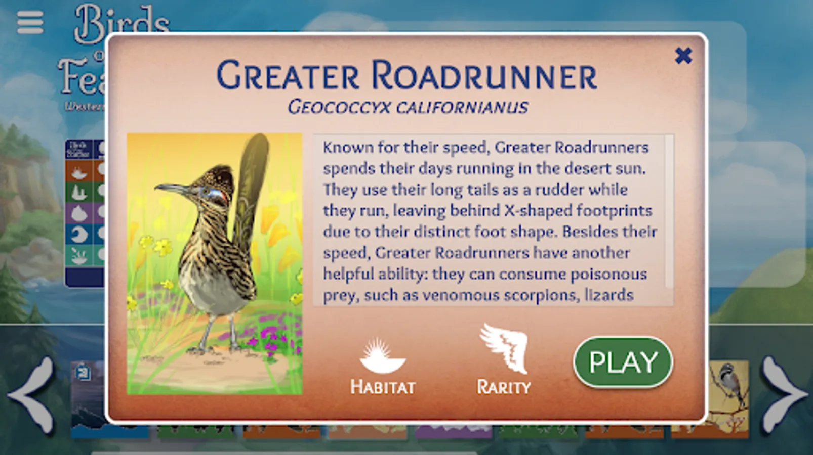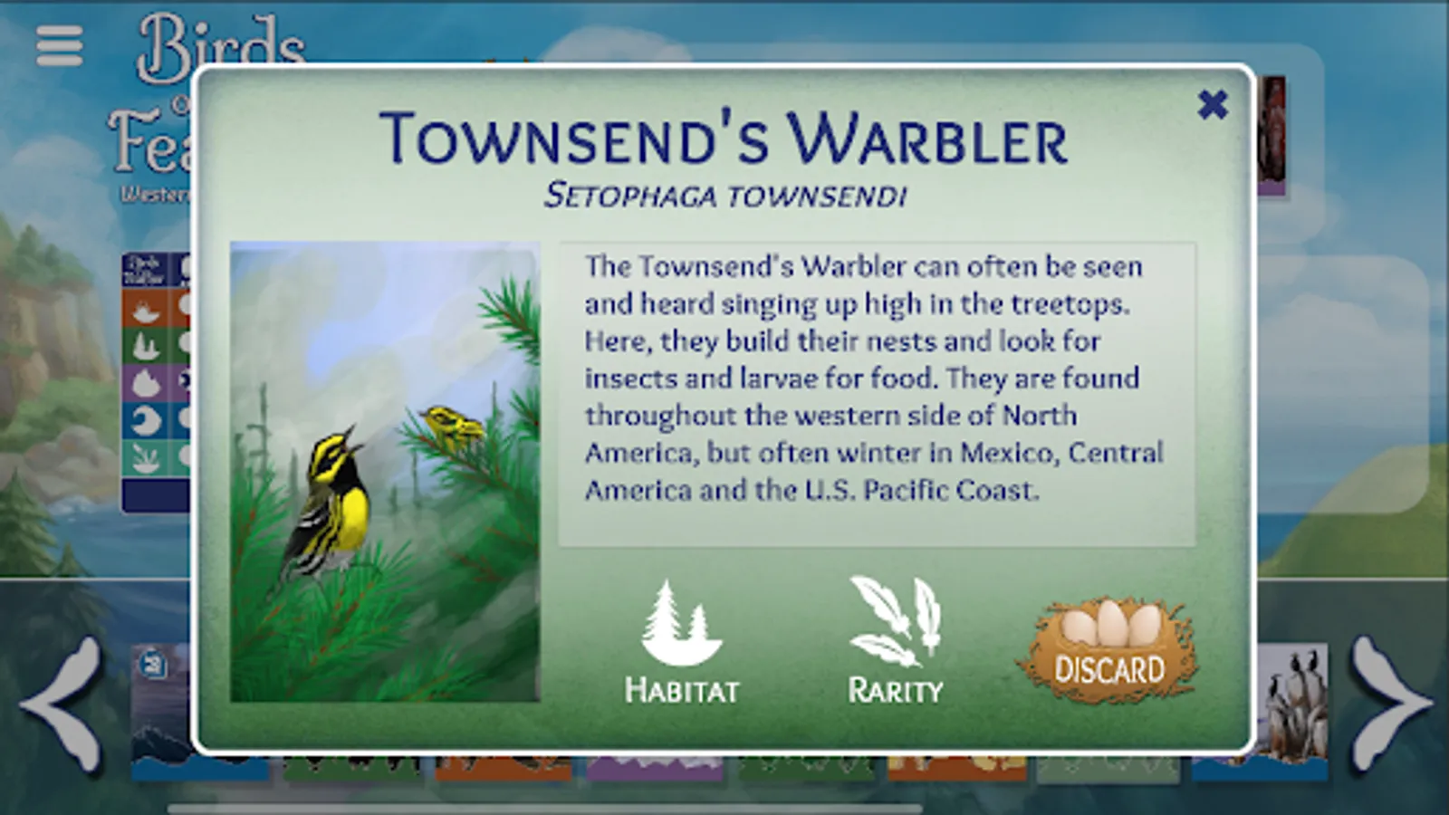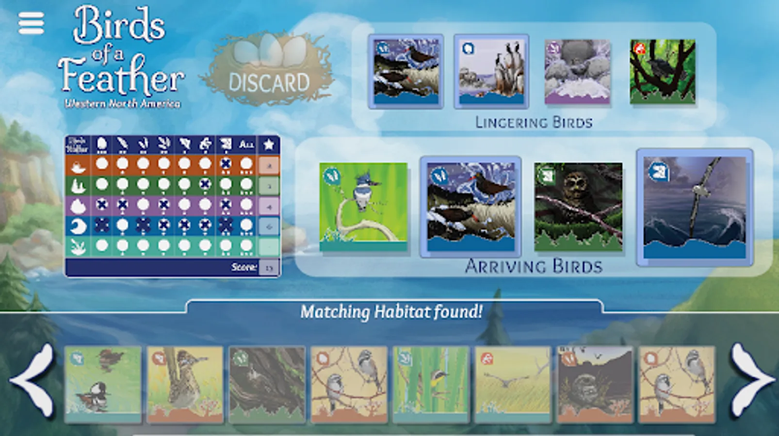 This handy app also acts as a reusable scoresheet for the physical card game Birds of a Feather: Western North America. Simply pull this up on your mobile device during game sessions and mark off each bird you see!