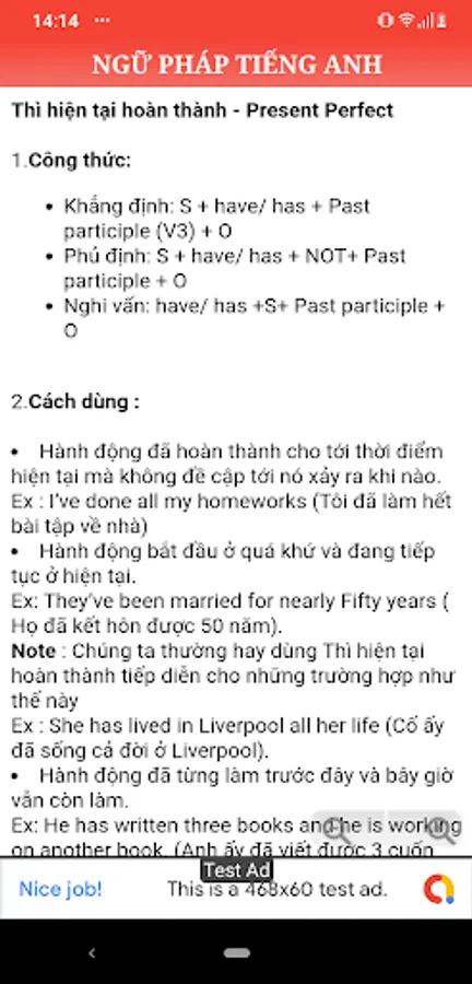 ✔ The application helps you to collect materials that provide lessons on English tenses, articles, prepositions, conditional sentences... and many other grammar lessons that will definitely help you consolidate your knowledge. Effective English grammar. Review English grammar is collected and compiled by us, including theory and examples that are clear, easy to understand, easy to remember, helping you actively learn English anywhere.