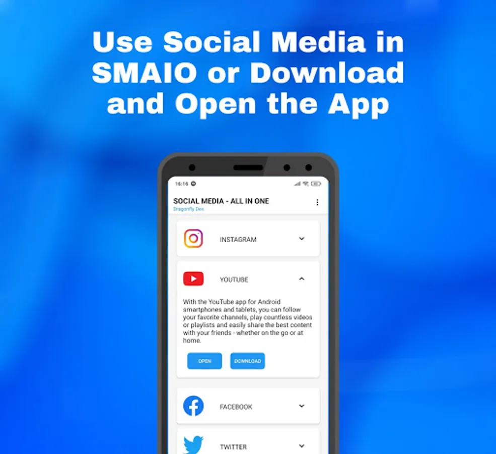 Social Media AIO offers the function of being able to use social media such as Instagram, Facebook, Twitter and many more, while using only a fraction of the storage space.