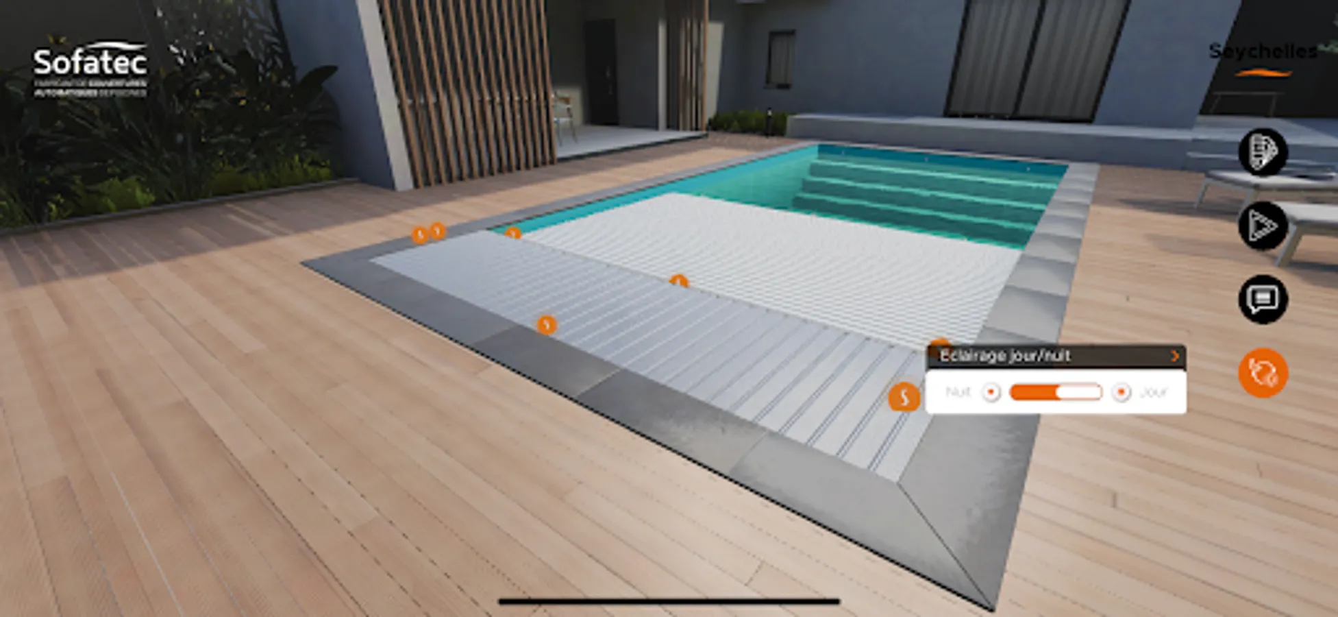 The Sofatec 3D configurator also offers you the possibility to see in real time the modifications made to the products day and night, which allows you to adjust your choices according to your needs.