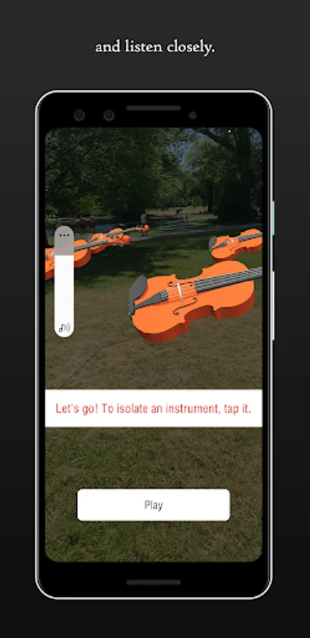 This experience is a spin-off from the sax@play project of the Landesbühnen Sachsen, for which I designed this orchestral experience as a scene within an augmented reality theatre game in public space based on Kafka's "The Castle" in 2021. This game was created by Expanding Focus and Play On, to whom I extend my sincere thanks for allowing me to transfer this scene into an independent app.