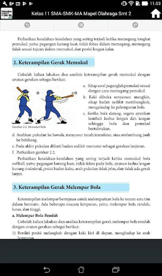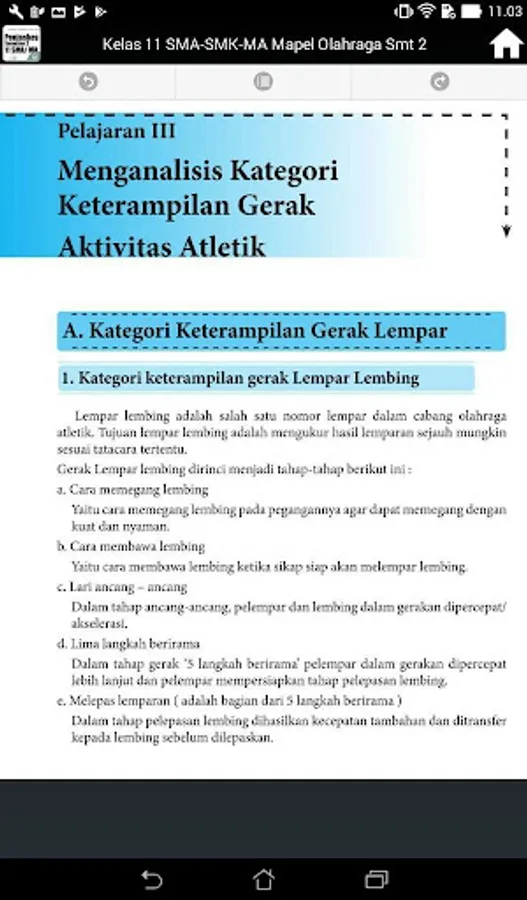 BSE (Electronic School Book) Mapel Sports Smt 2 To Level SMA MA Class 11 is a module in materials text book lessons, materials inside her is a textbook which has done an assessment by the National Education Standards and has been designated as textbooks that meet eligibility requirements that can be used as a learning guide. Digital school books provided by the government, Loading general knowledge about the subject, about the exams, school exams, the National Exam, retraining daily, weekly, half and half term, the end of the semester and grade.