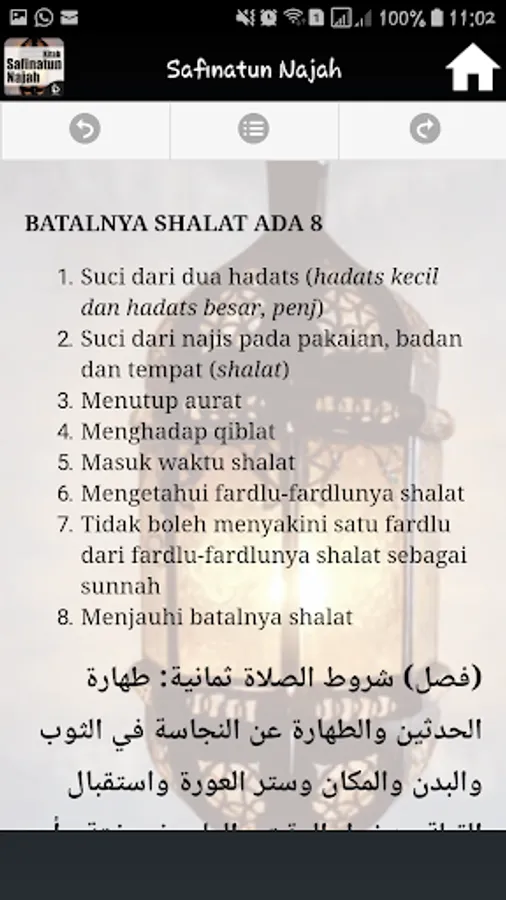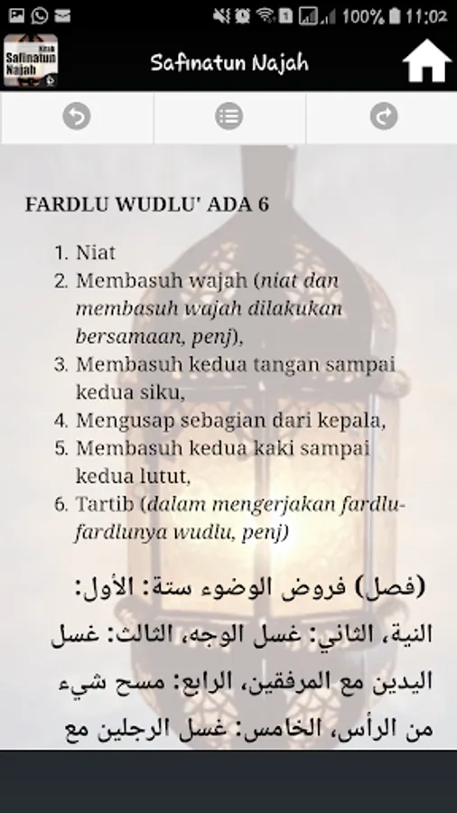 This application contains the Book of Safinah Yang learn the duties of a servant to his Lord. The book is small but very terrific shape will benefit from the discussion. Since both the students and the scholars are very fond of study it carefully and thoroughly.