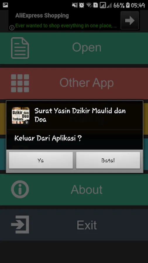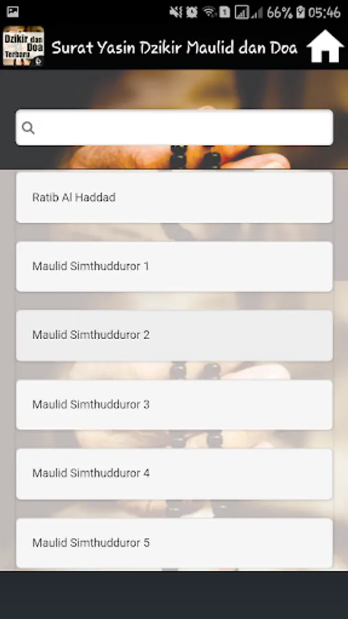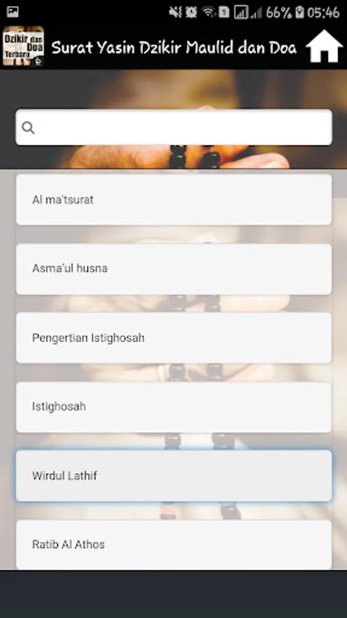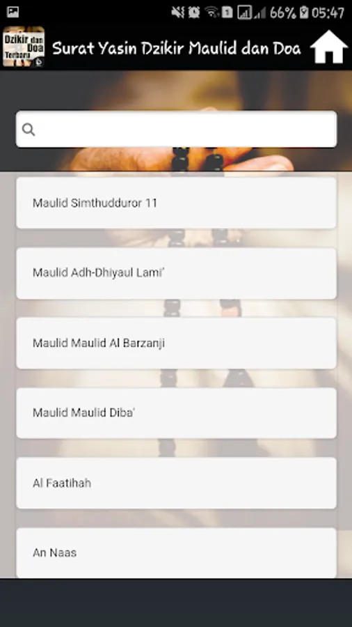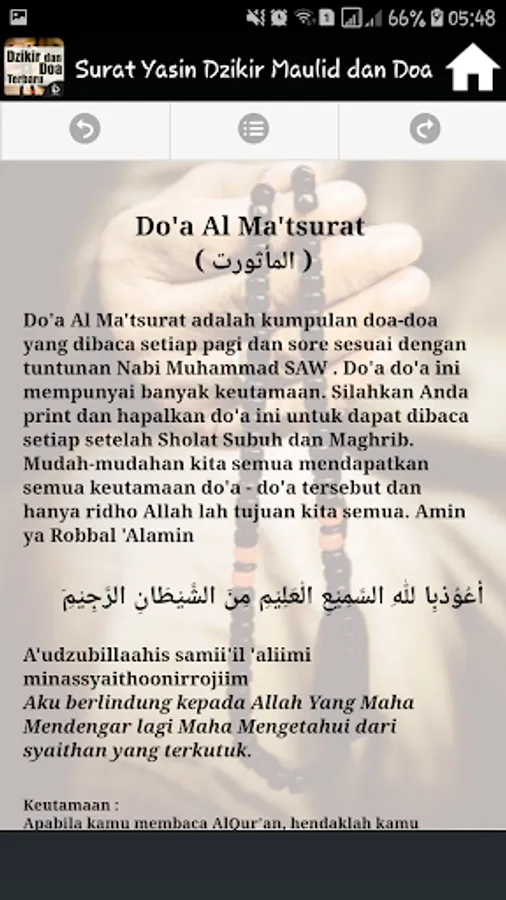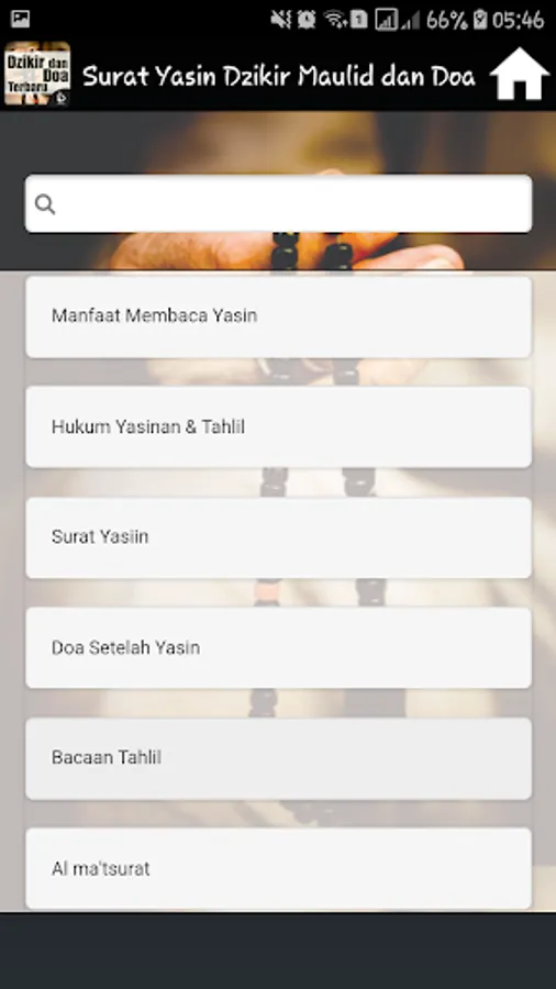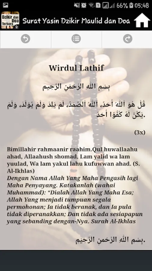 It Contains Complete applications into one application Surat Yasin, Dhikr Pagi Sore, Mawlid, Ratib and prayer is accompanied by a Latin inscription and its translation