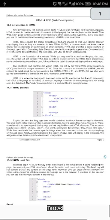 This app contains detailed notes on HTML and CSS