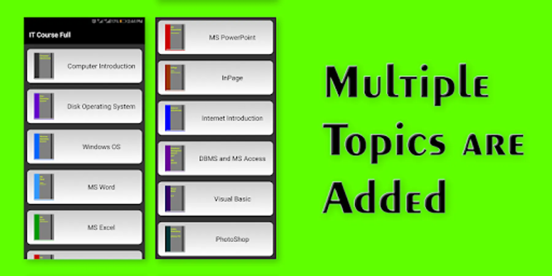 This application contain topics that may be included in user's IT/Computer Course.