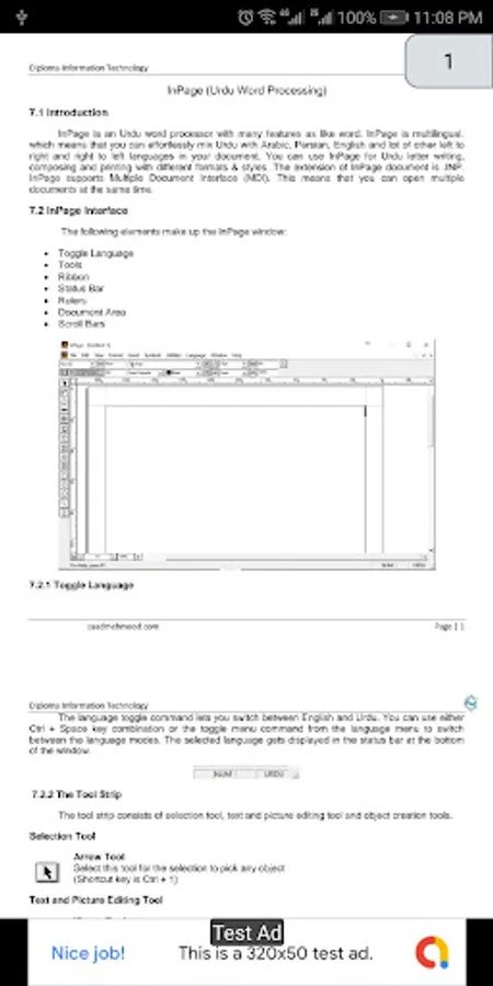 InPage is a word processor and page layout software for languages such as Urdu, Balochi, Persian, Pashto and Arabic under Windows and Mac which was first developed in 1994. It is primarily used for creating pages in the language of Urdu, using the Nasta`līq (نستعلیق) ('hanging' calligraphic) style of Arabic script.