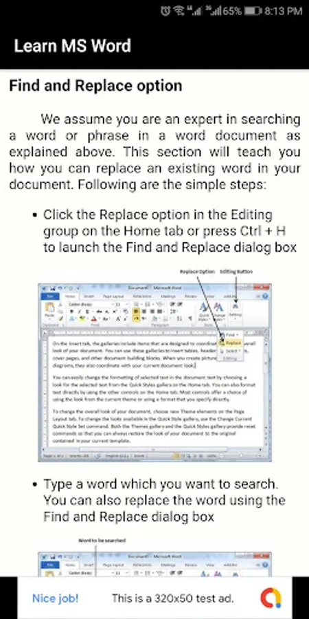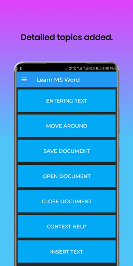 Download and learn MS Word with this application and work with the amazing word processor.