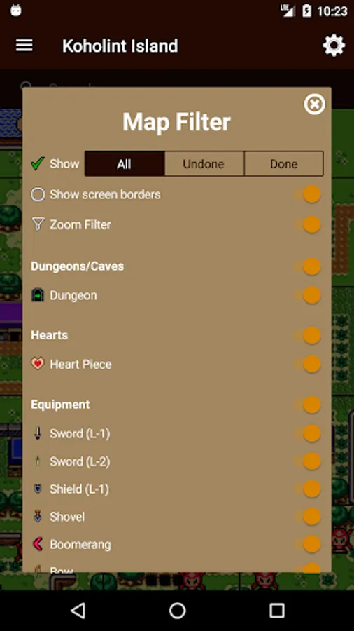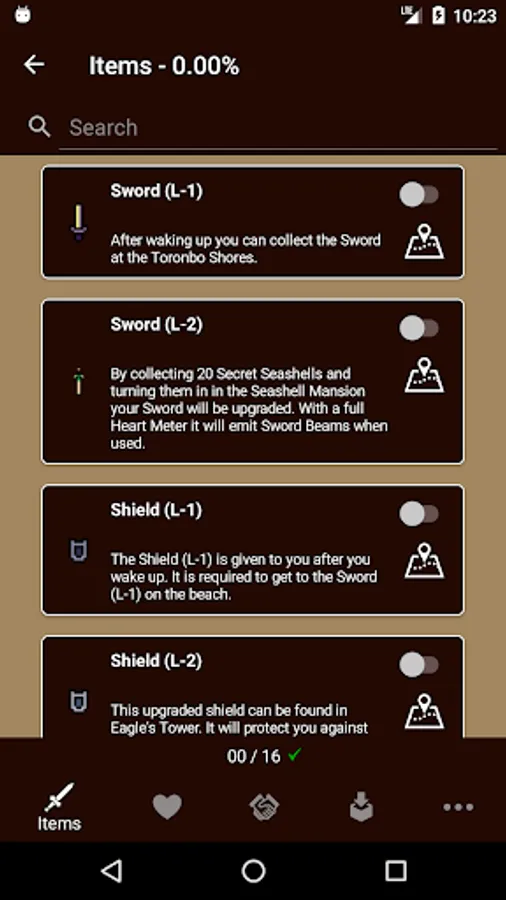 Unofficial offline map for Link's adventure on Koholint Island. The map for the overworld currently features the locations of: