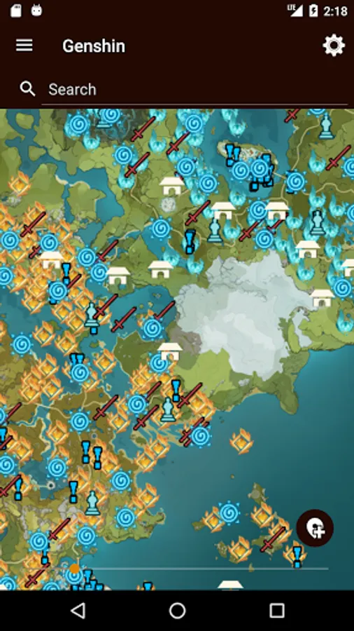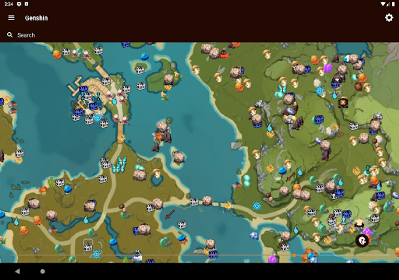 Unofficial offline map for Genshin Impact. The map features the locations of: