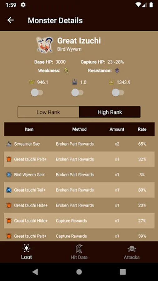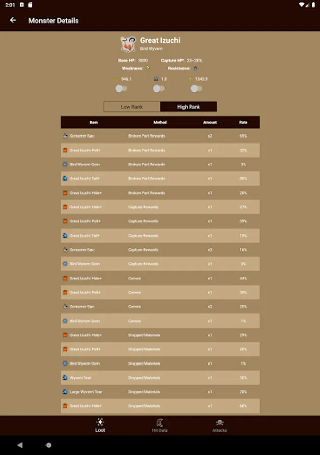 This unofficial guide app for Monster Hunter Rise assists your journey and features detailed statistics for: