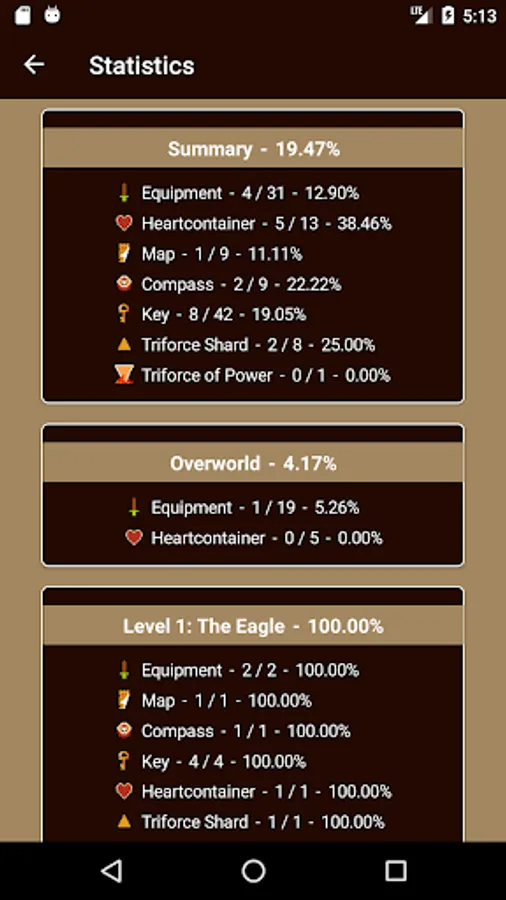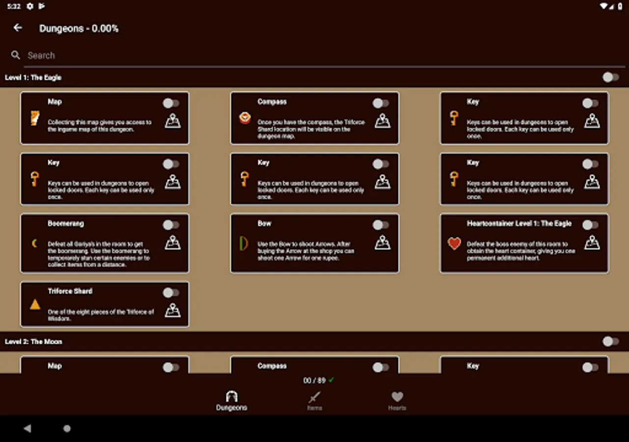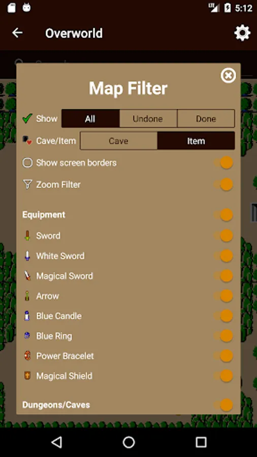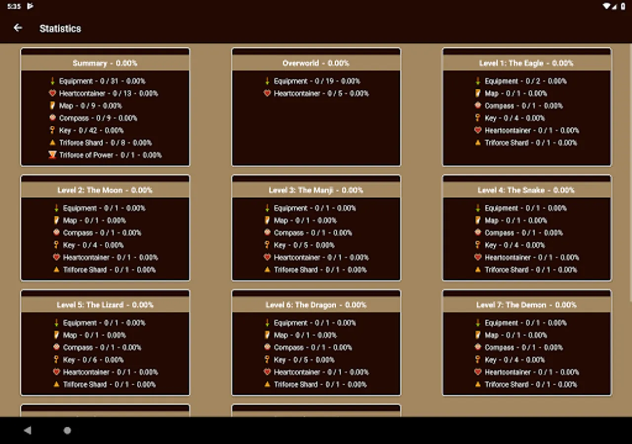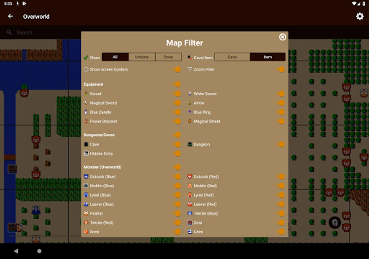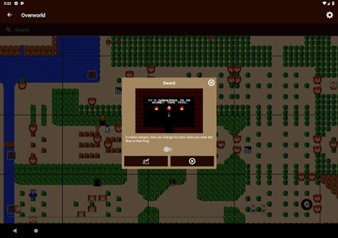 Unofficial offline map for the classic The Legend of Zelda game. The map for the overworld currently features the locations of: