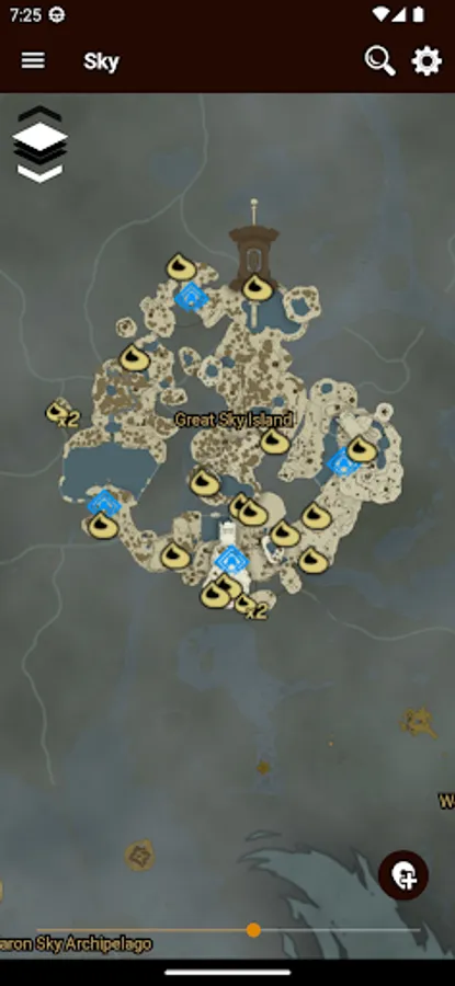 Unofficial offline map for The Legend of Zelda: Tears of the Kingdom. The maps feature the locations of: