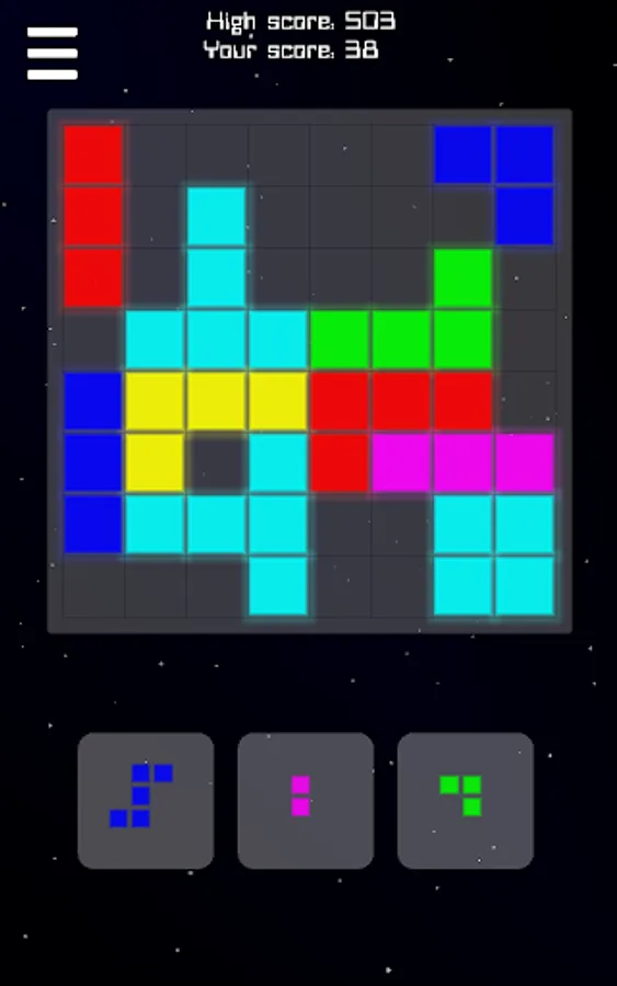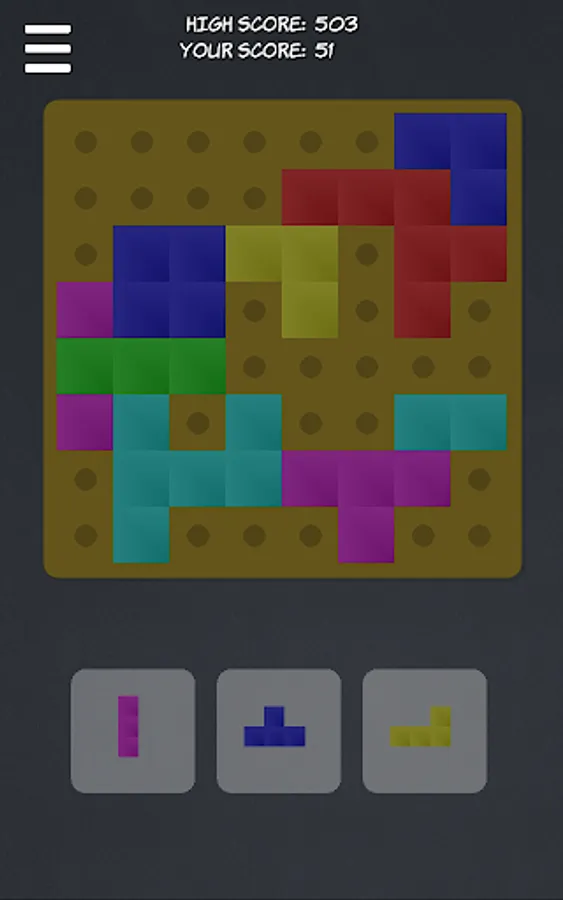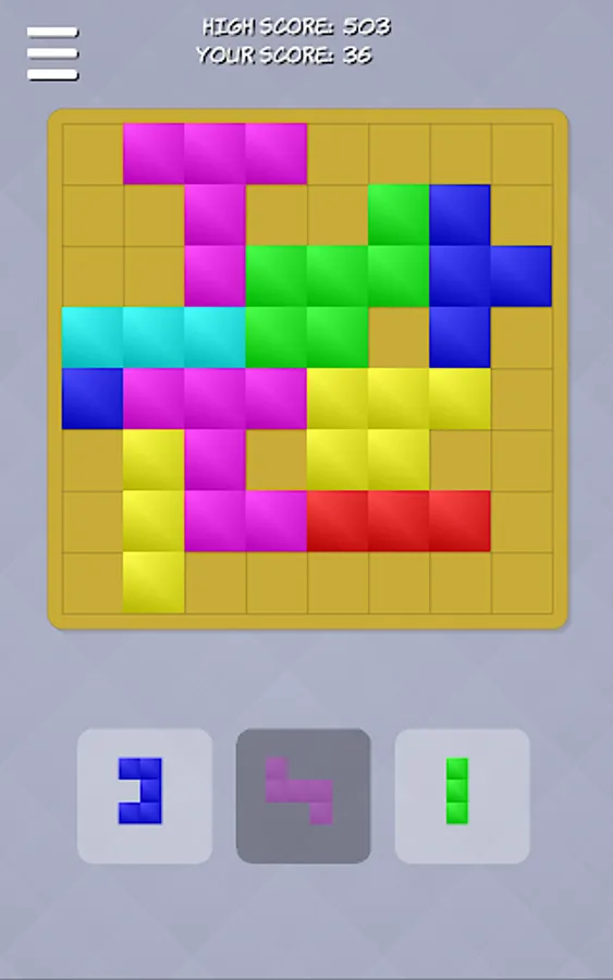 Place the block figures on the grid and attempt to make lines in the grid to receive points and make space for new blocks. Make single colour rows and earn special blocks for extra points.