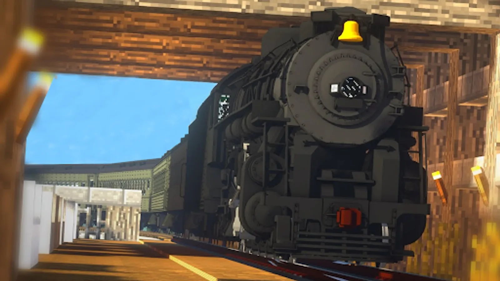 Train mod for Minecraft Pocket Edition provides you with unique items, realistic map and skins which you can use in your MC PE world. You can master the profession of a machinist and learn how to operate a real steam locomotive in pixel cube universe.