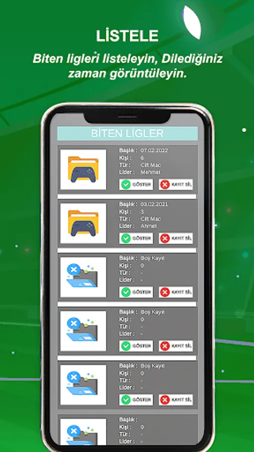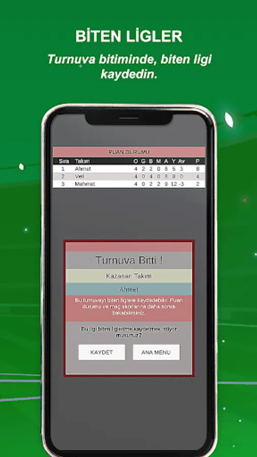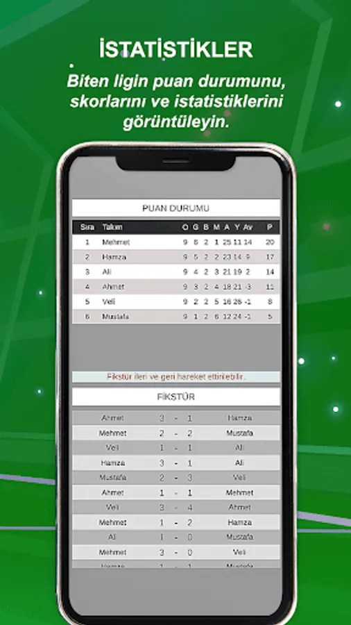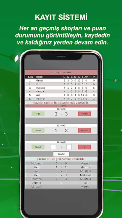 Choose how many players to form a league. Let's create leagues and fixtures for you with teams of 3-7 people. Enter the scores of the next match. Follow the standings and statistics. You can save your league and continue your league from where you left off. Save finished leagues. View statistics, standings and match scores at any time.