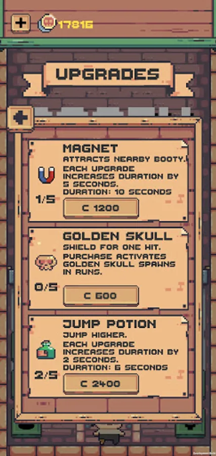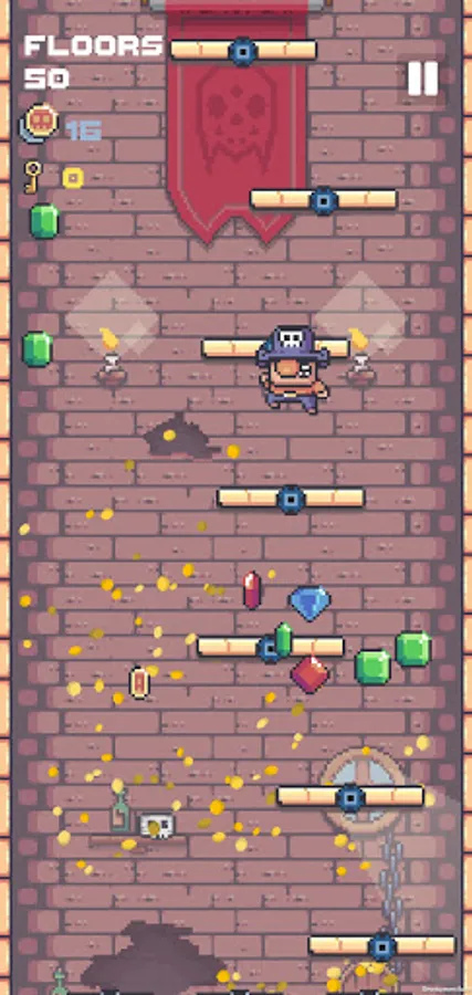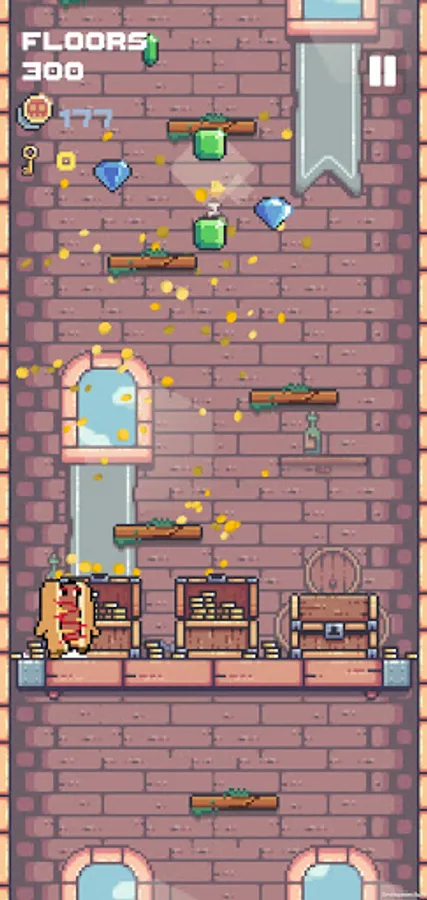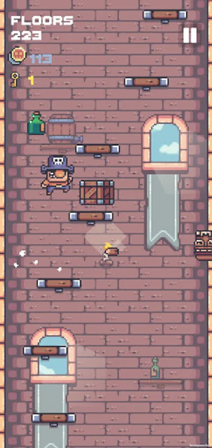 You're a pirate seeking fortune in the dangerous Booty Tower. The higher you climb, the more loot you collect! But be careful, falling too far or getting hit by traps will stop your run!