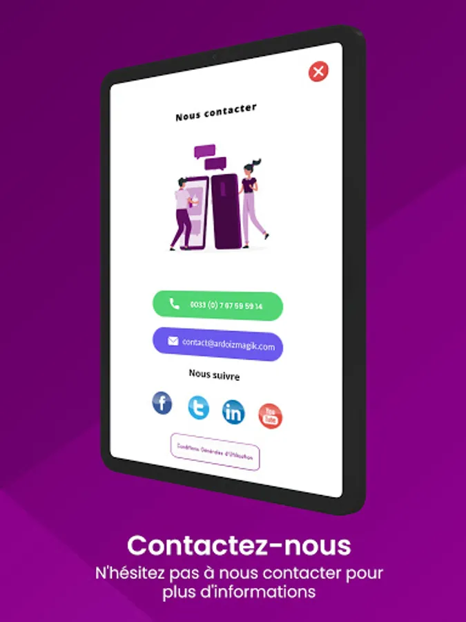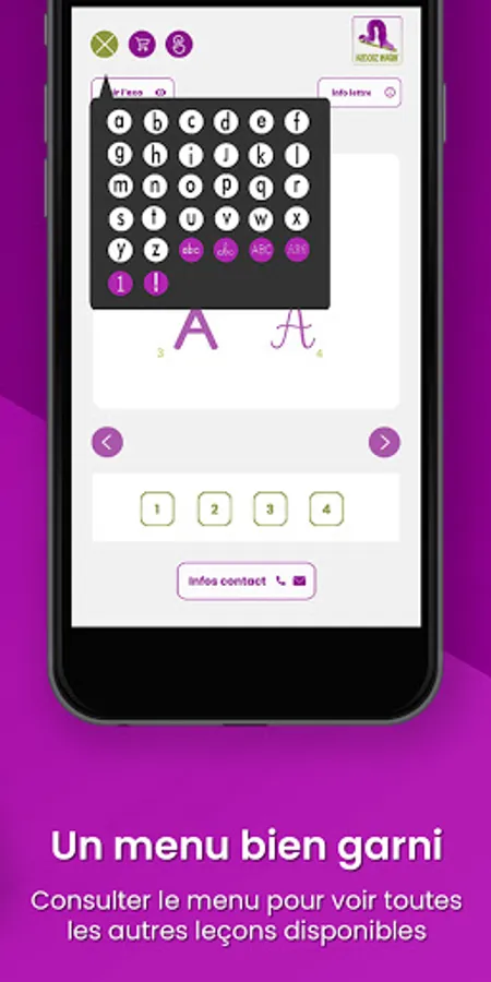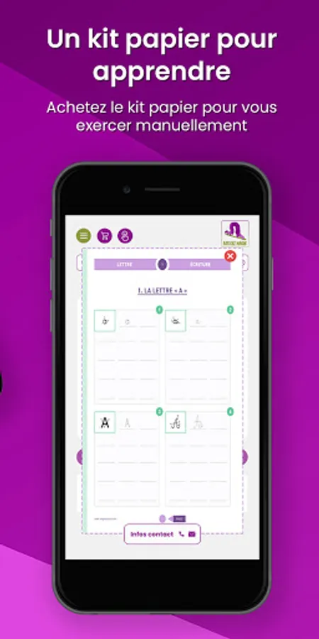 Ardoiz Magik is an application that makes it easier for illiterate adults to learn to write. This is done independently and in a fun way. It is simple and practical to use, with the integrated black slate and its different writing models. A kit is made available to people who wish to practice more in paper format. With Ardoiz Magik, they will be able to learn to write all the letters of the alphabet in the four writing styles, the numbers 0 to 9, the symbols and the different punctuation marks. On the interface, using the "Update" button located at the top right of the slate, the learner can, with a simple gesture, erase the work done and start practicing again in a clean space.