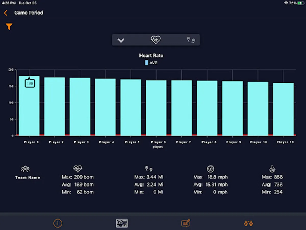 GoalMax Coach provides advanced tools for managing and viewing sessions in real-time. GoalMax Coach provides the coach the ability to monitor player logs such as water, weight, and sleep, to view player baseline and summary metrics, to monitor player states such as fatigue, mood, injury, and medication, and to keep Coaching Notes such as coaching points and events.